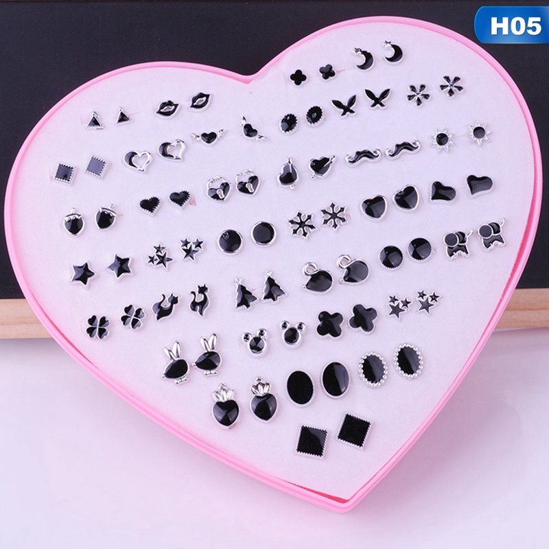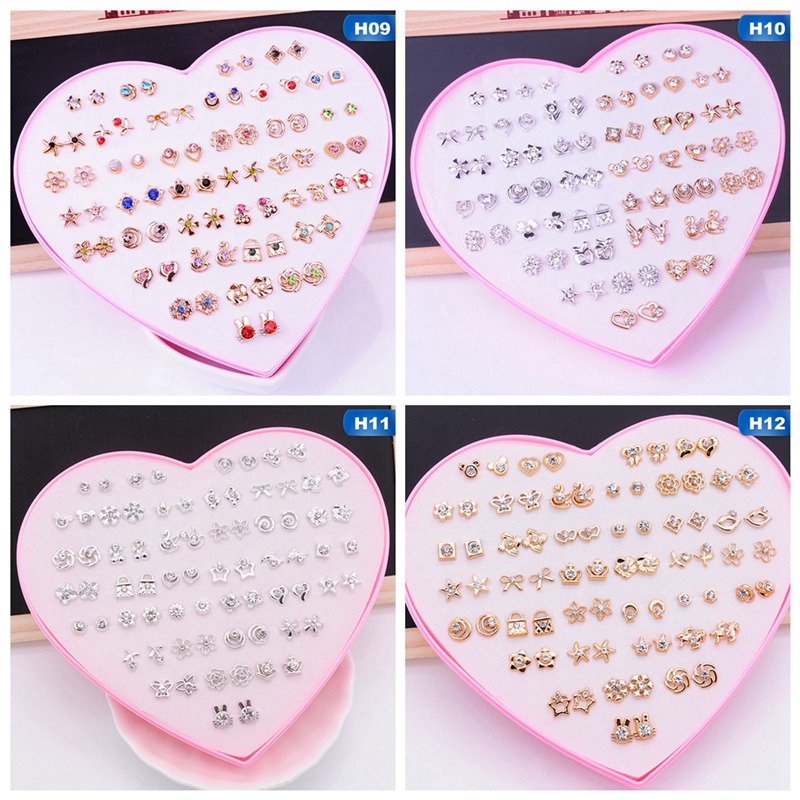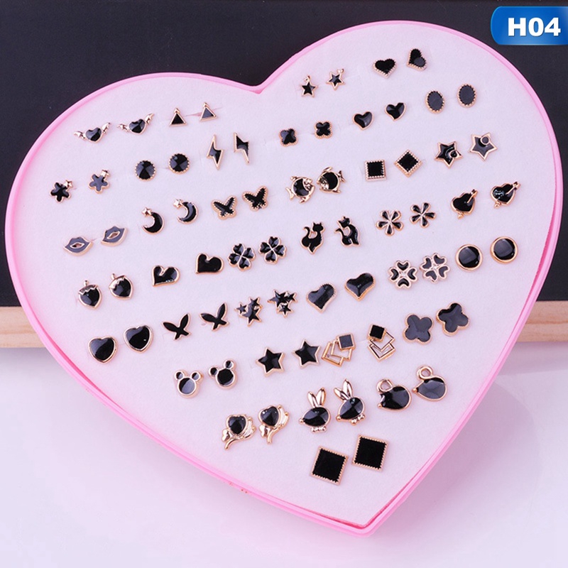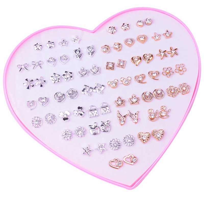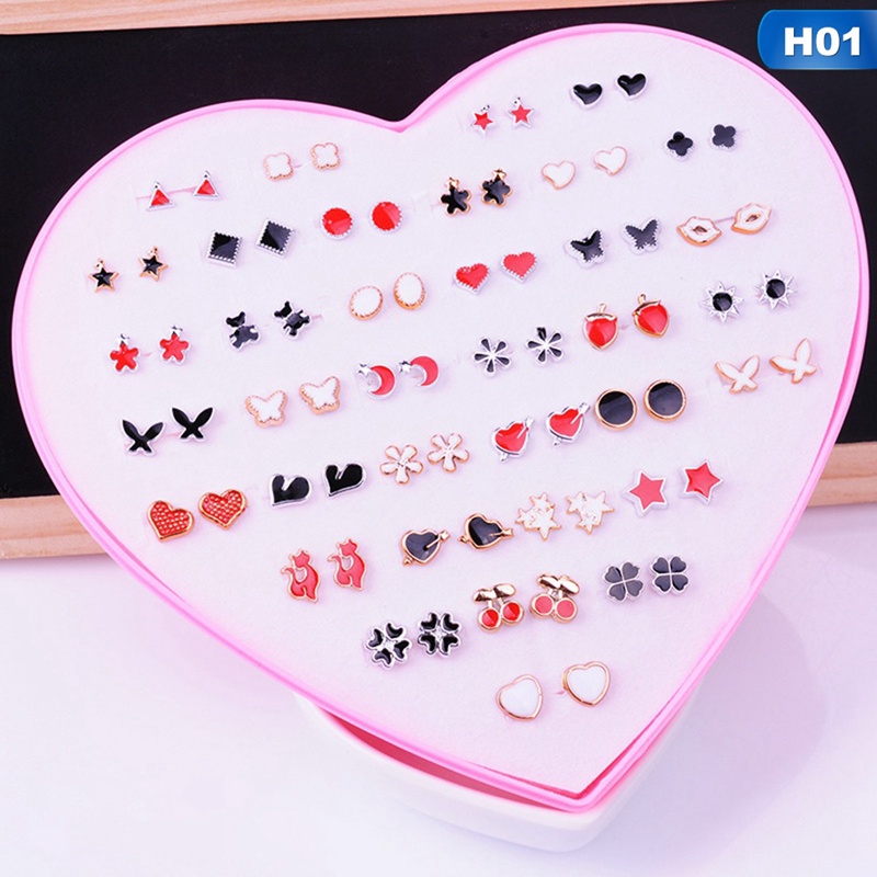 36 Pairs Pack Set Mixed Stud Earrings For Women Alloy Ear Studs Fashion Heart Flower Bow Cat Cute Earrings
