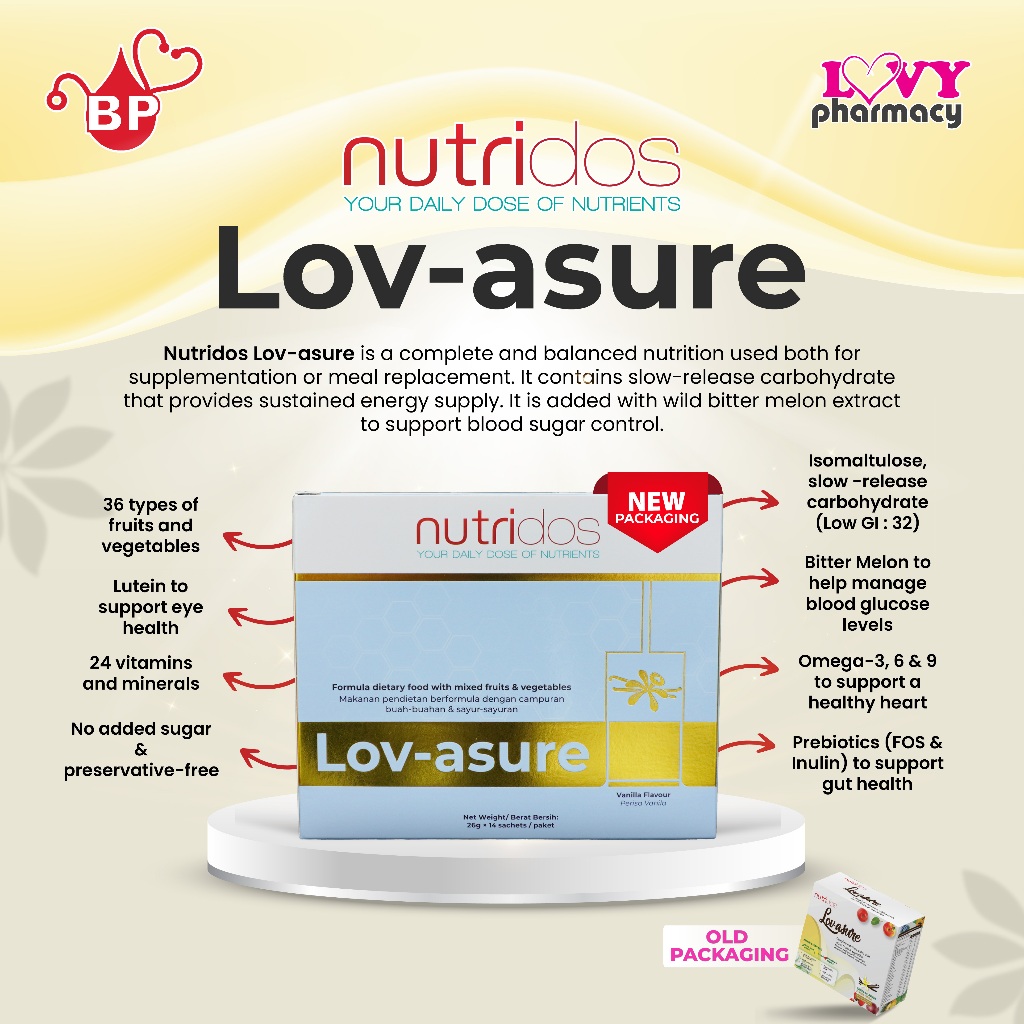 NUTRIDOS LOV-ASURE (2 X 14'S) PENGGANTI HIDANGAN LENGKAP – PERISA VANILA