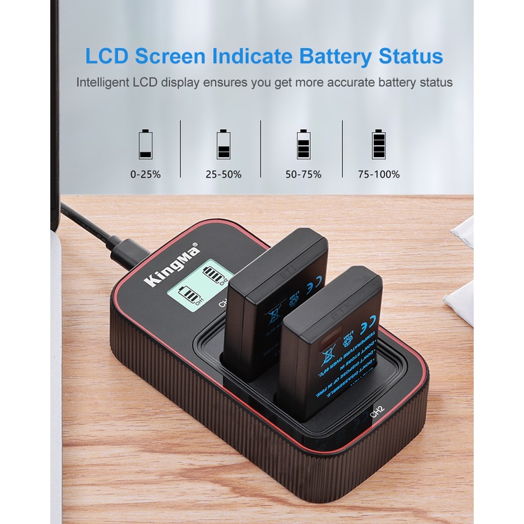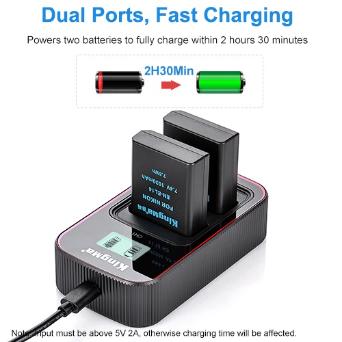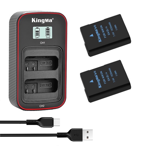 KingMa EN-EL14 2-Pack Battery and LCD Dual Charger Kit for Nikon D3100 D3200 D3300 D3400 ENEL14