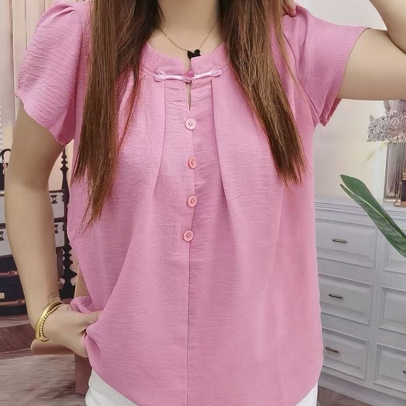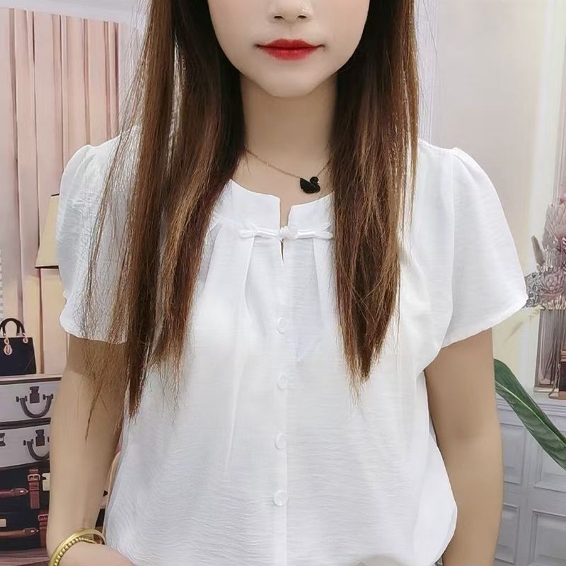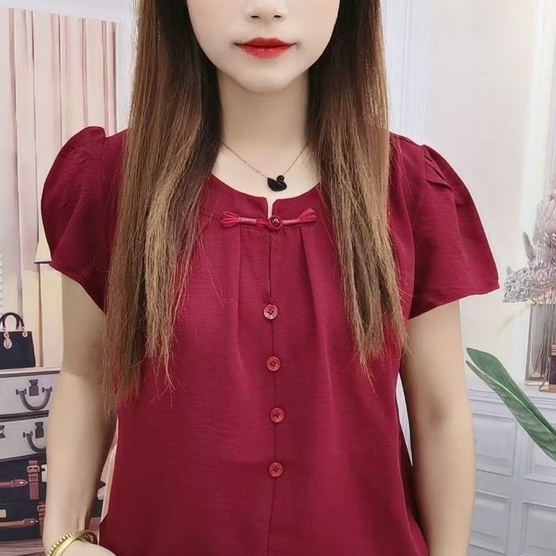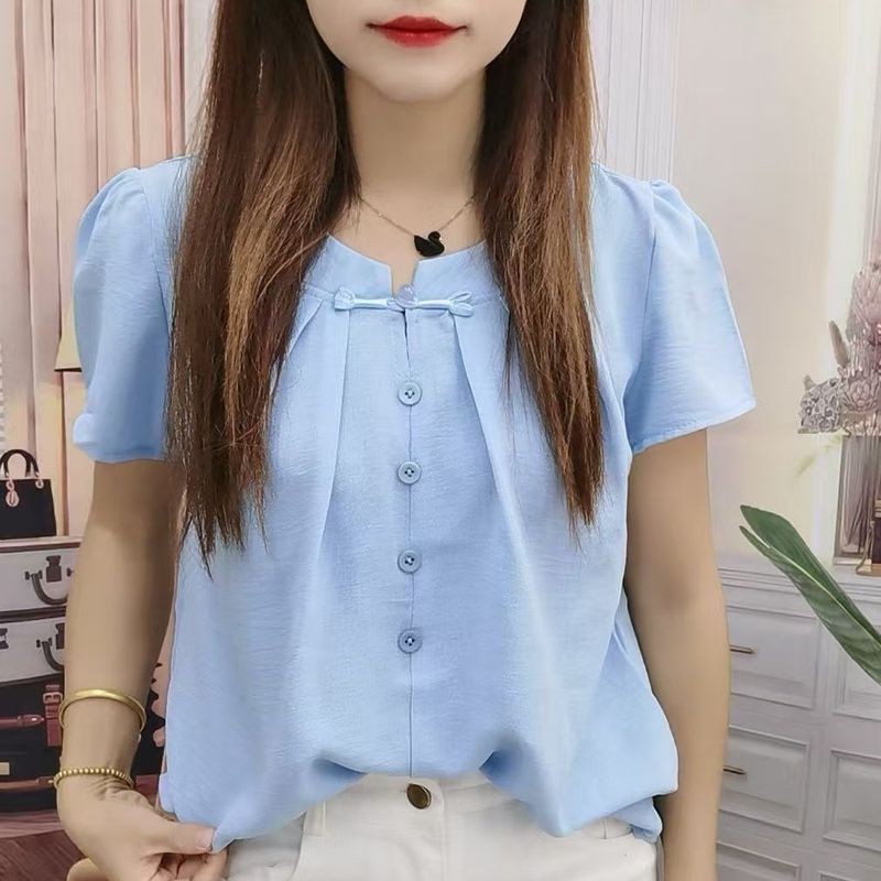 2025 Summer New Style Chiffon Shirt - Loose Fit with Retro Buttons to Cover Belly