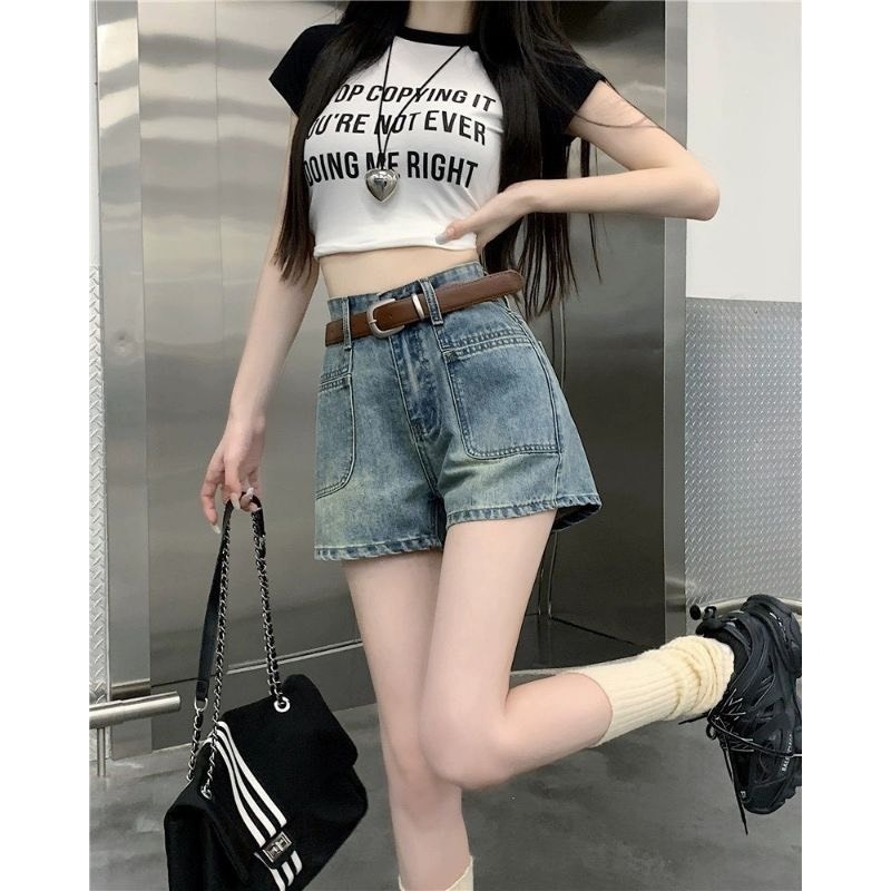 Women's high-waisted jean shorts, basic high-waisted wide-leg women's jean shorts high waist short pants