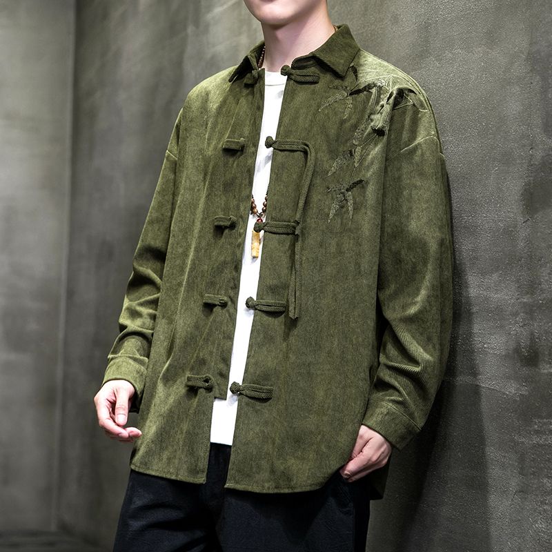 Tang style men's spring and autumn style Chinese style men's clothing ancie唐装男春秋款中国风男装古风宽松青年中山装新中式灯芯绒汉服外套