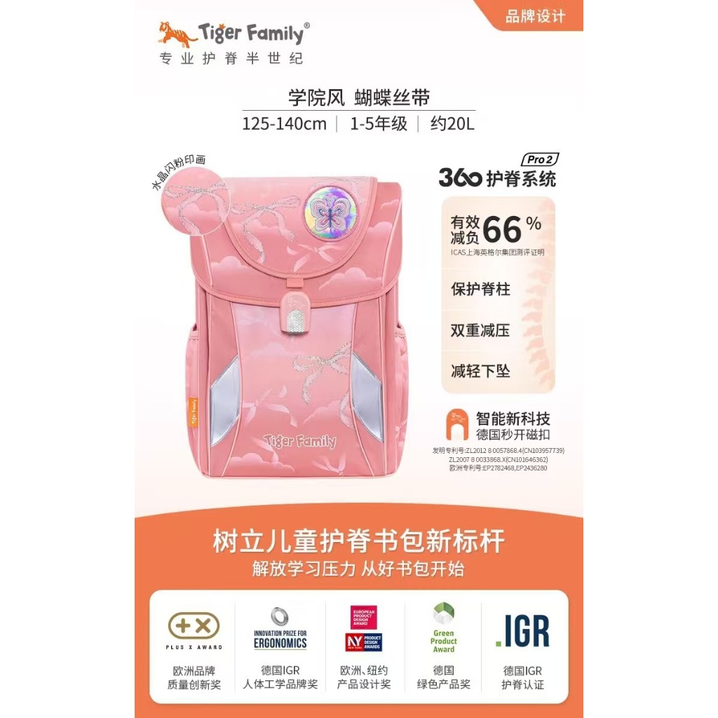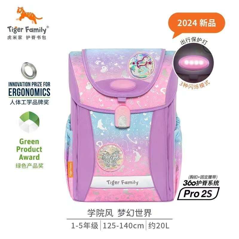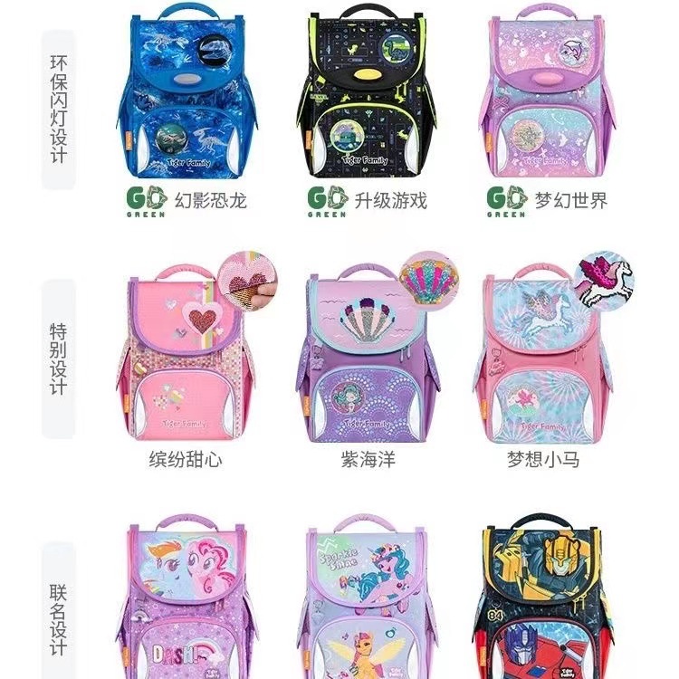 Tigerfamily Elementary School Bag Male Lightweight Female Children Backpack Grade 1-3-6 Backpack