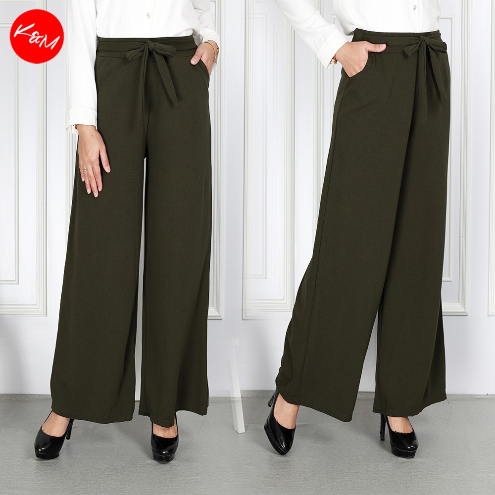 KM Women Ribbon Fastened Elastic One Size Palazzo With Side Pocket Trouser Pants Culottes [P27390]