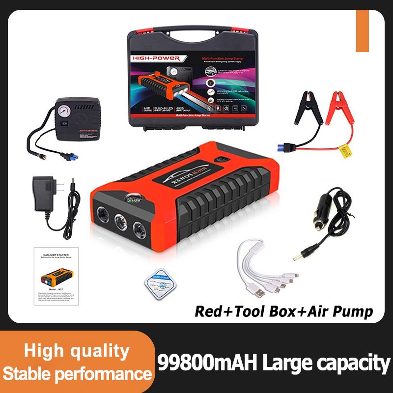 99800mAh Car Jumper Car PowerBank Car Tyre Car Pump Starter Booster 12V Car Emergency Jump Start Powerbank 充电宝 汽车启动器