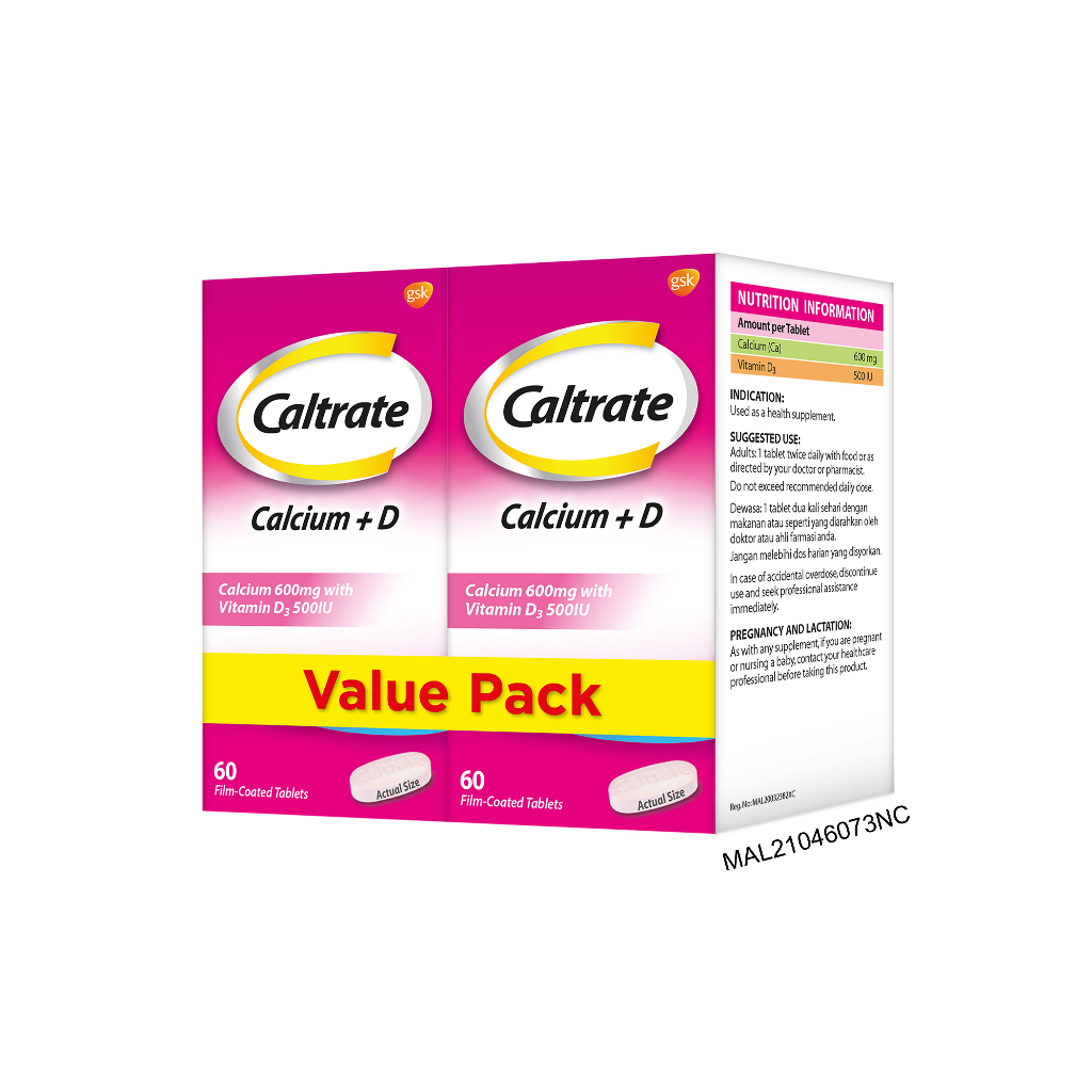 Caltrate 600 + D Calcium Dietary Supplement For Bone Health With Vitamin D Value Pack (60's x 2)