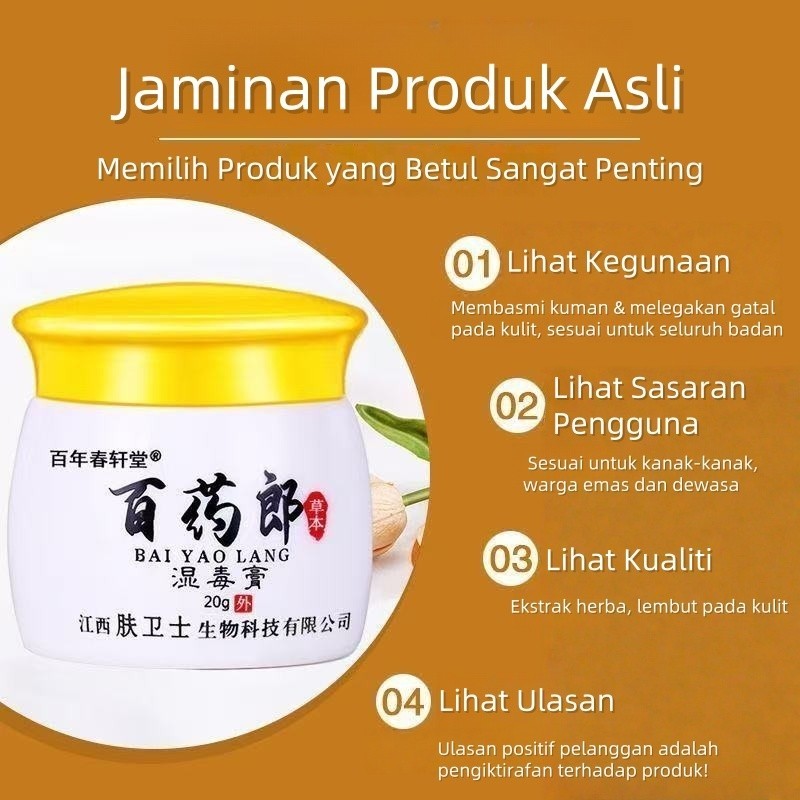 BaiYaoLang Cream Eczema Herbal Cream Anti-Itching Krim Gatal Kulit Herba Cina Antifungal