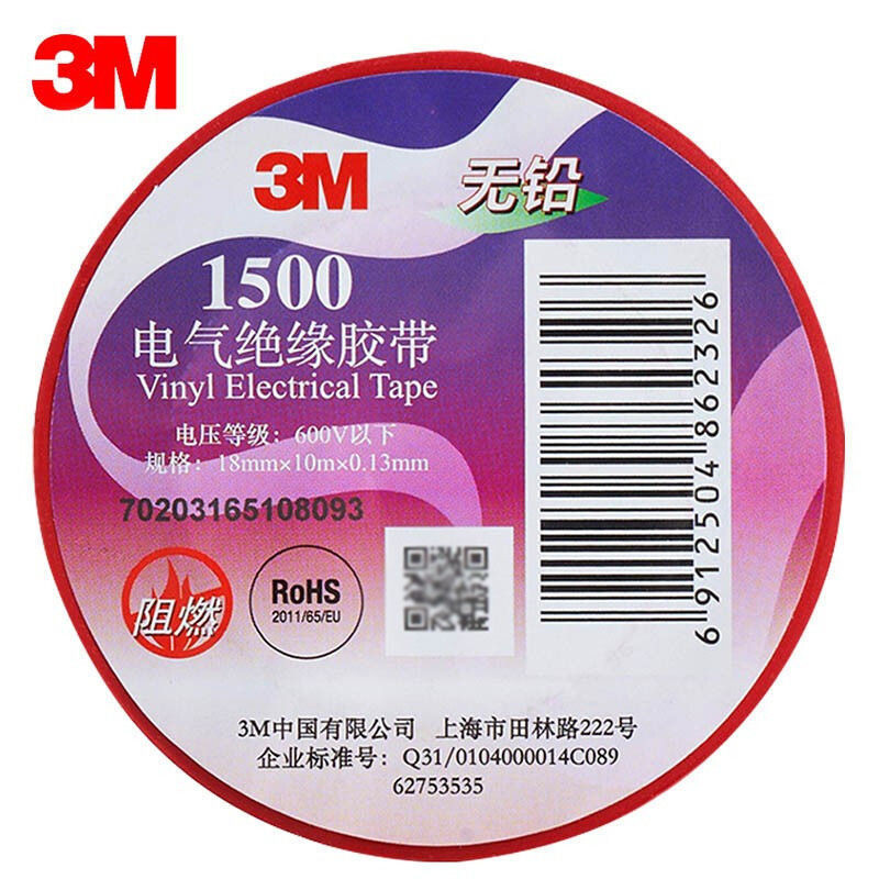 [Hot Sale] 3M Electrical Insulation Tape PVC Flame Retardant 1500 Electrical Wire Black White Tape High Temperature Resistant Lead-Free Tape 10m