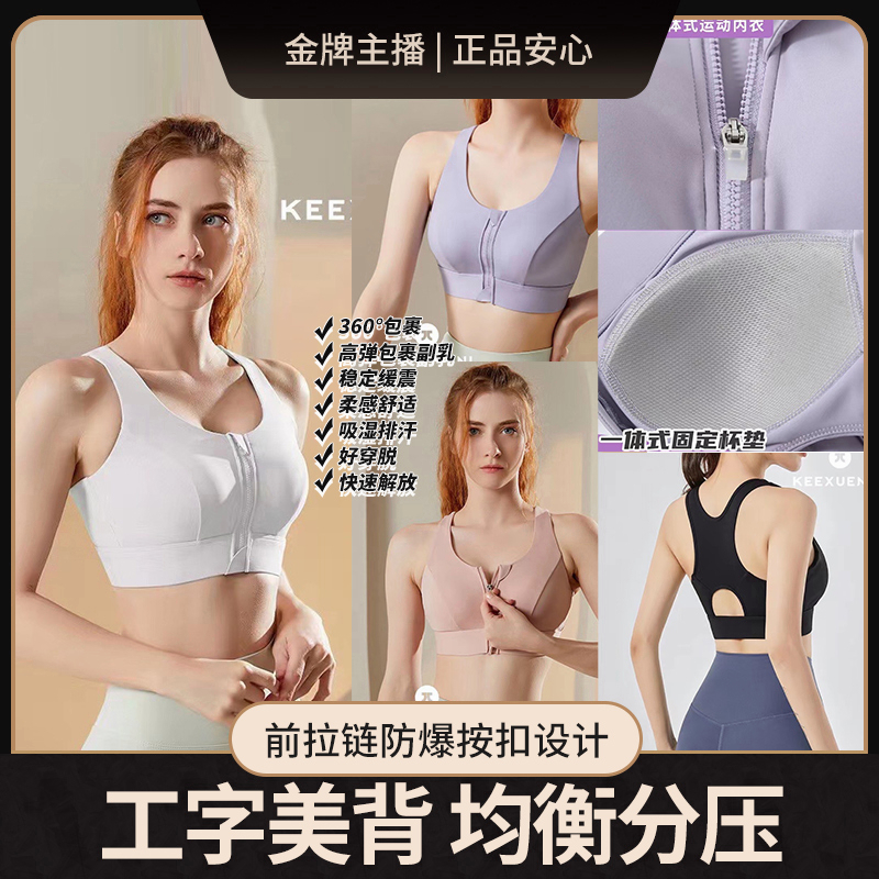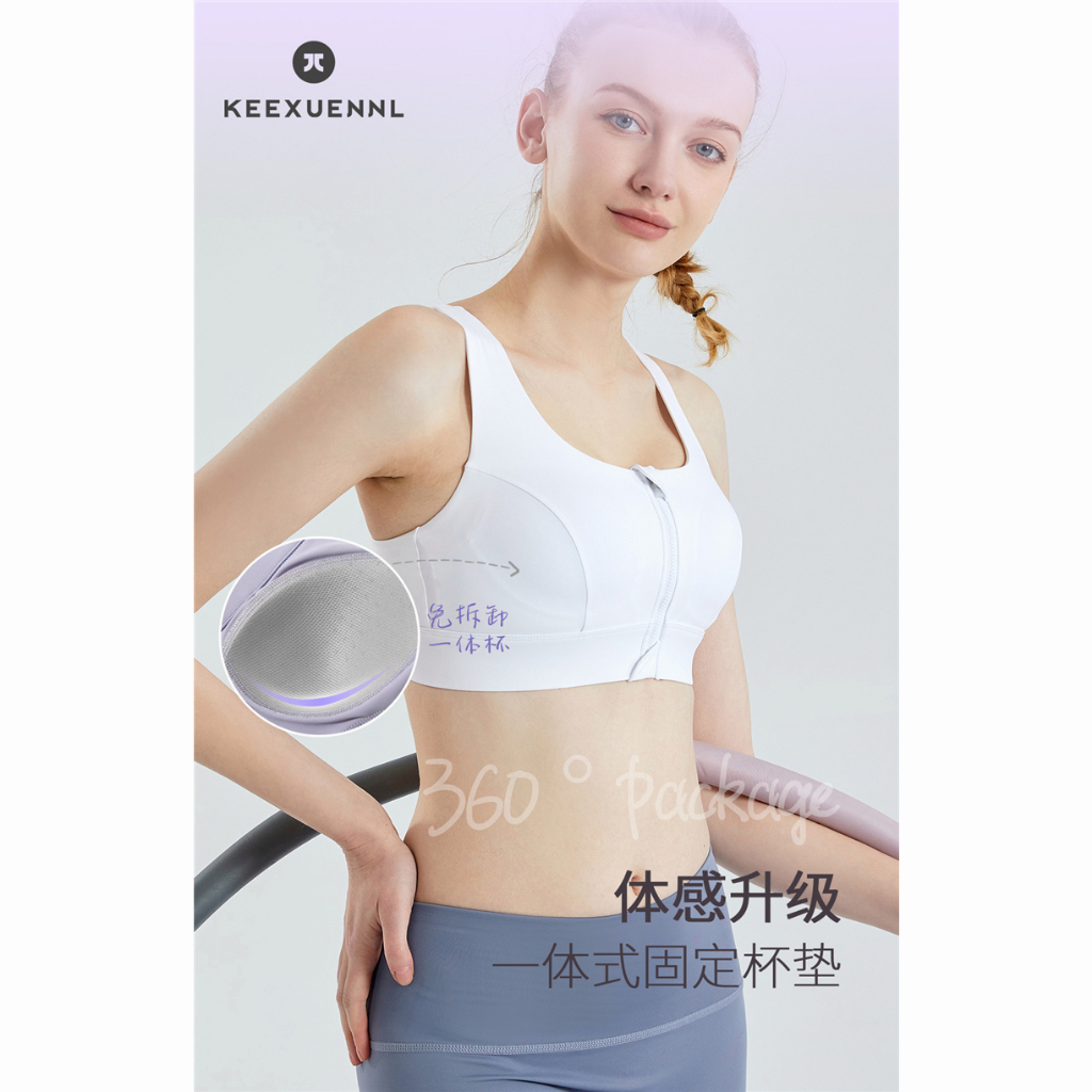 Keexuennl Women Zipper Sport Bra Plus Size Wireless Bra Vest Women Shockproof 珂宣尼 前拉链运动内衣防震 固定胸垫