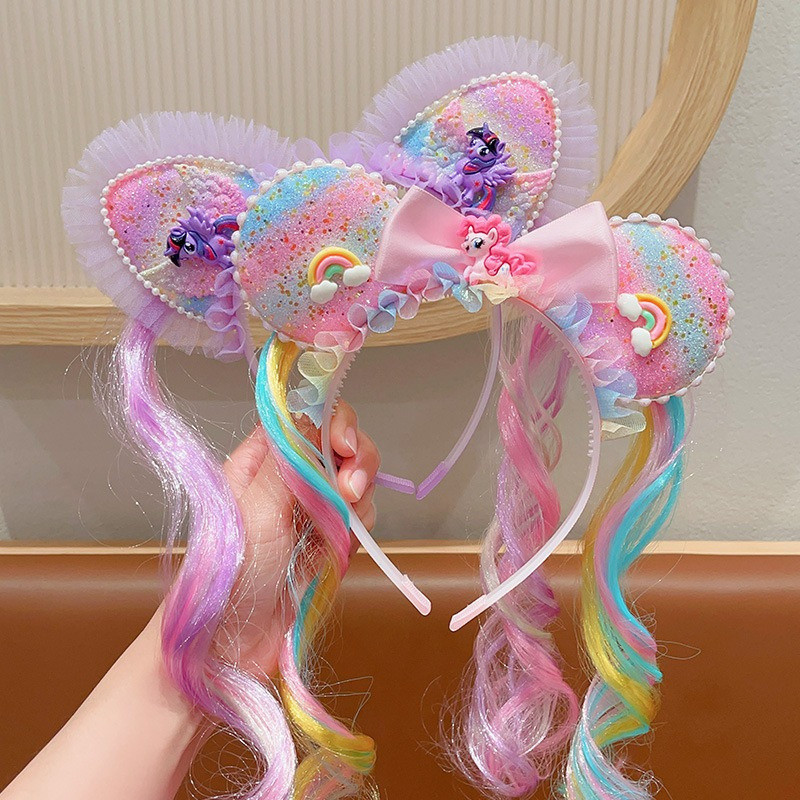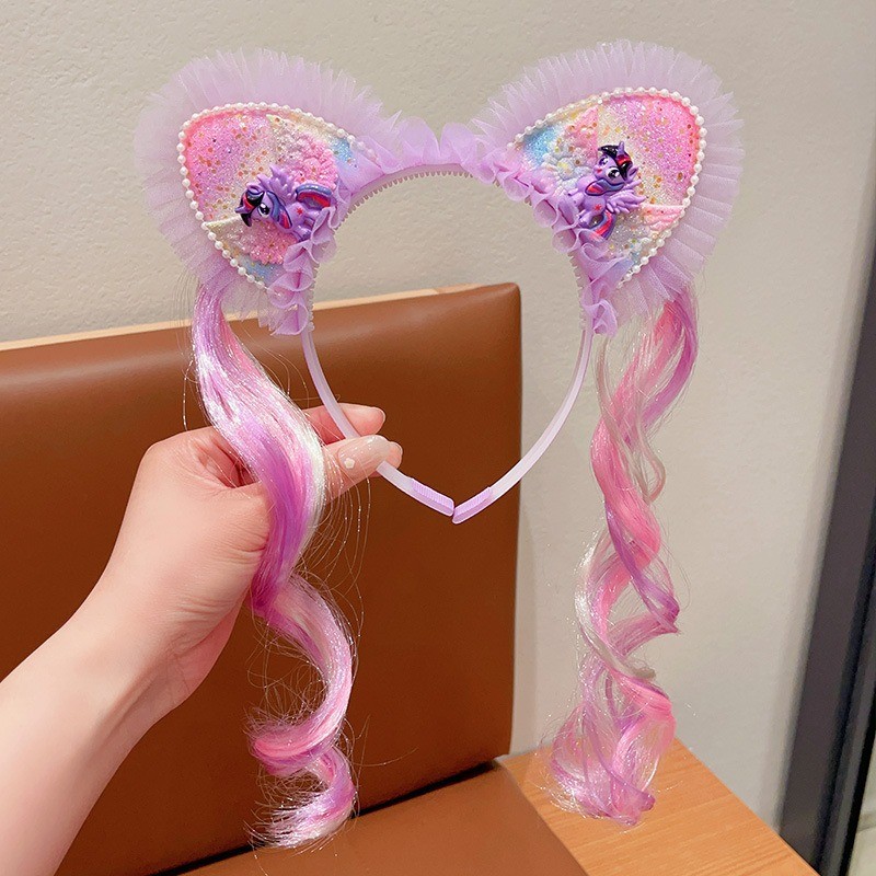 Children's Headband New My Little Pony Crown Sweet Cute Cat Ear Cartoon Colorful Wig Headband Girl Hair Accessories