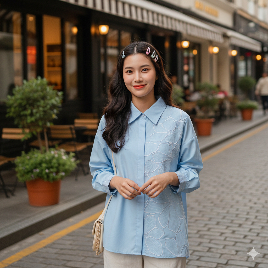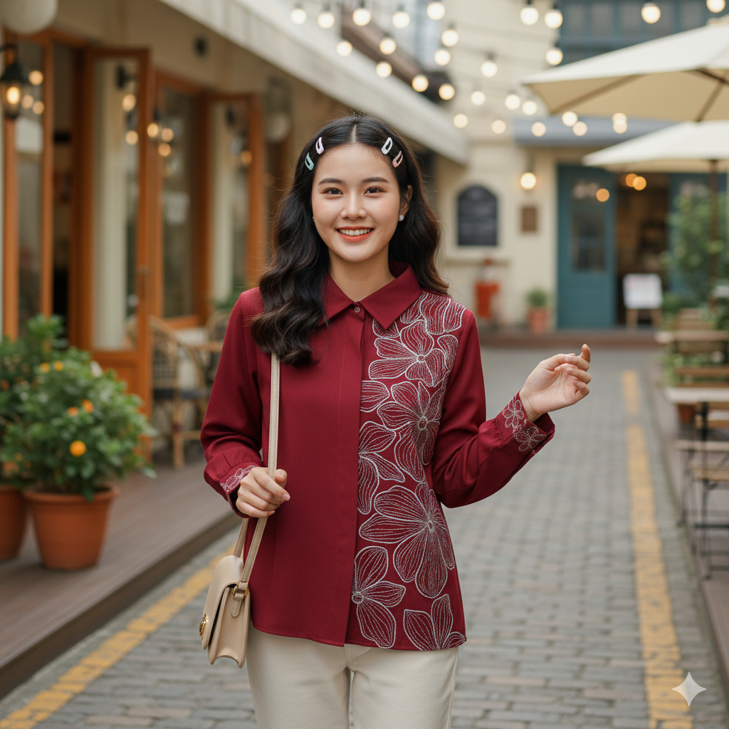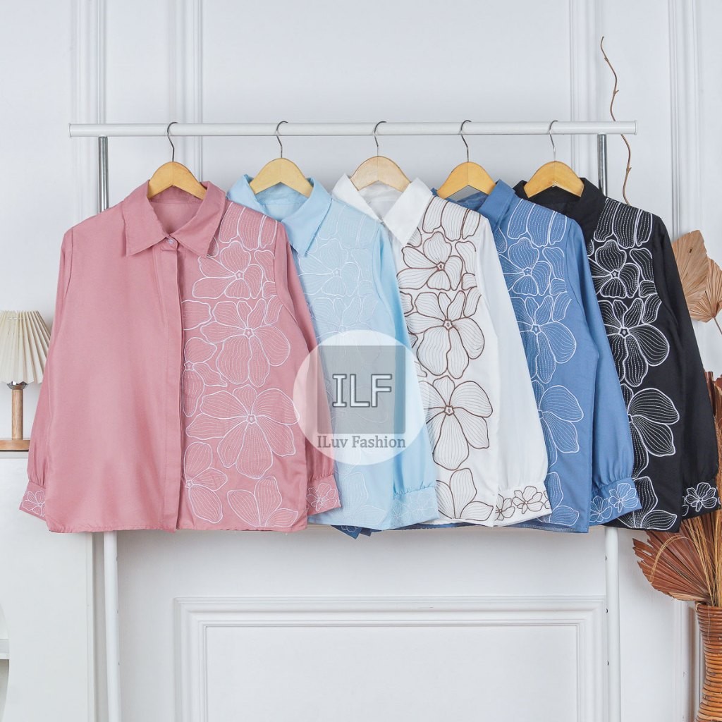 KEMEJA IL - LUISA SHIRT | Premium Embroidered Women's Top | Aesthetic Earth Tone Women's Shirt | Trendy Embroidered Tops Cotton Blouse