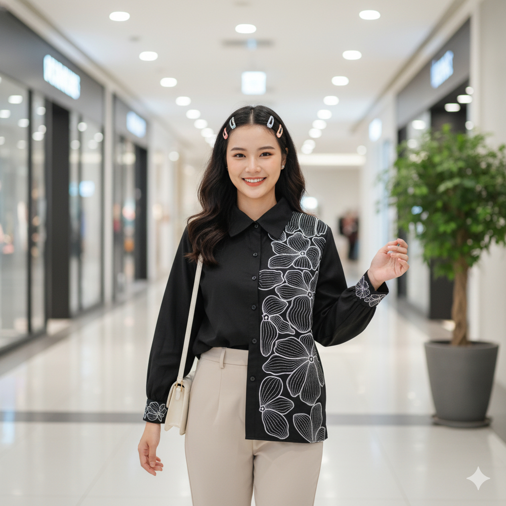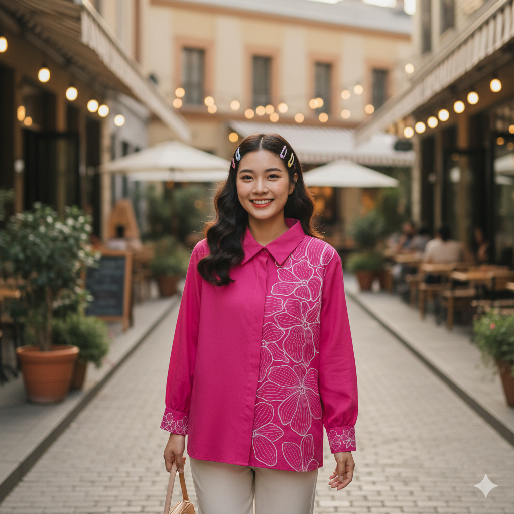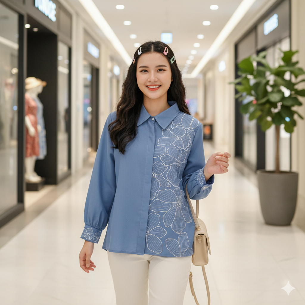 KEMEJA IL - LUISA SHIRT | Premium Embroidered Women's Top | Aesthetic Earth Tone Women's Shirt | Trendy Embroidered Tops Cotton Blouse