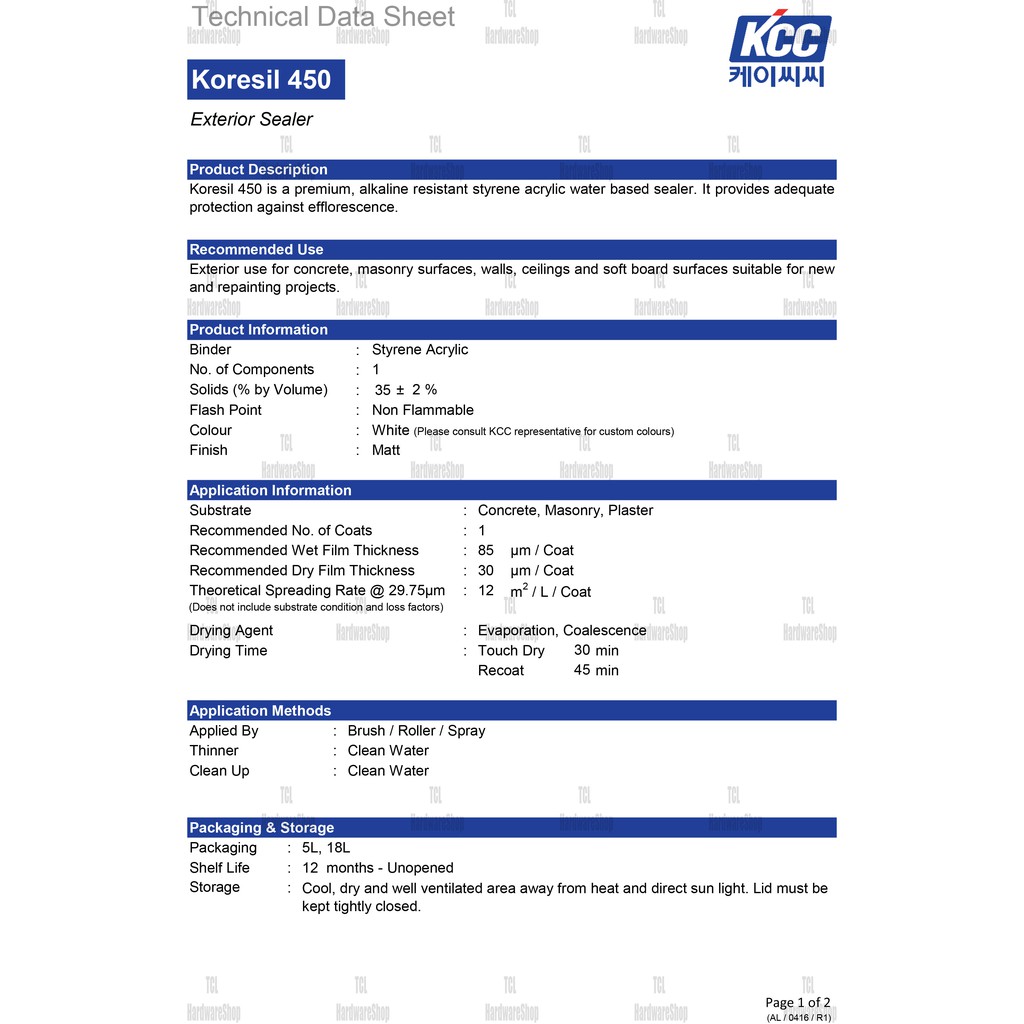 KCC Cat Korea 18L Koresil 450/ Wall Sealer Exterior/ Wall Sealer Luar