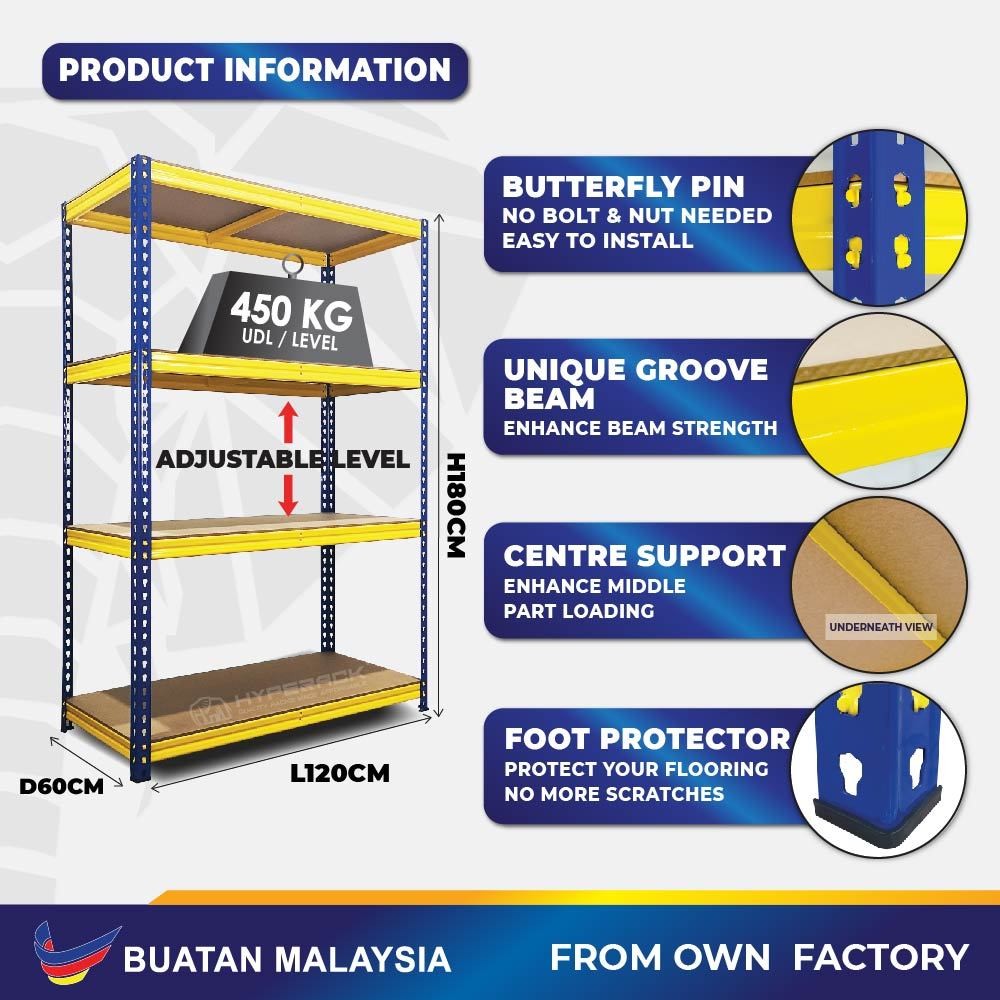 HYPERACK ™️ [High Quality] Boltless Rack 180cm(H) x 30cm(D) x 120cm(L) + Multi Tool Box Rak Besi Rak Sebarguna