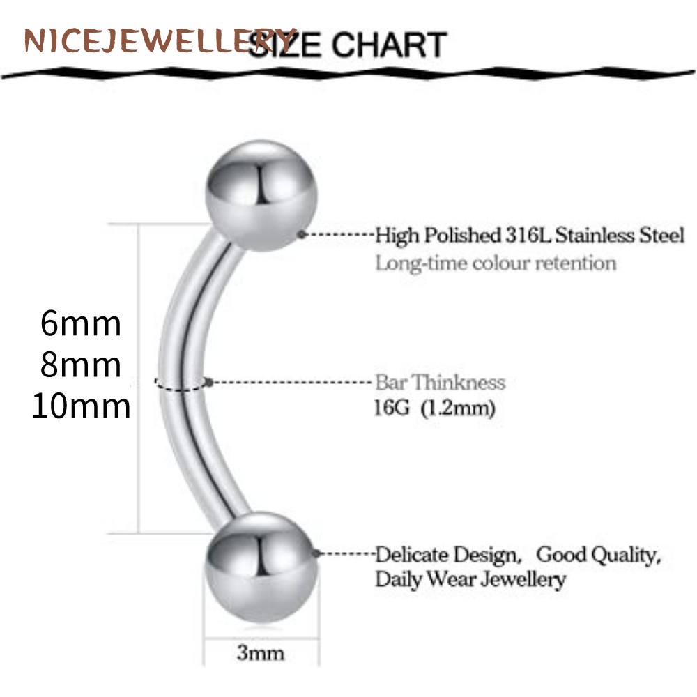 1 PC Eyebrow Ear Studs Stainless Steel Rook Cartilage Piercing Anti Allergic Curved Rod Eyebrow Bridge Piercing