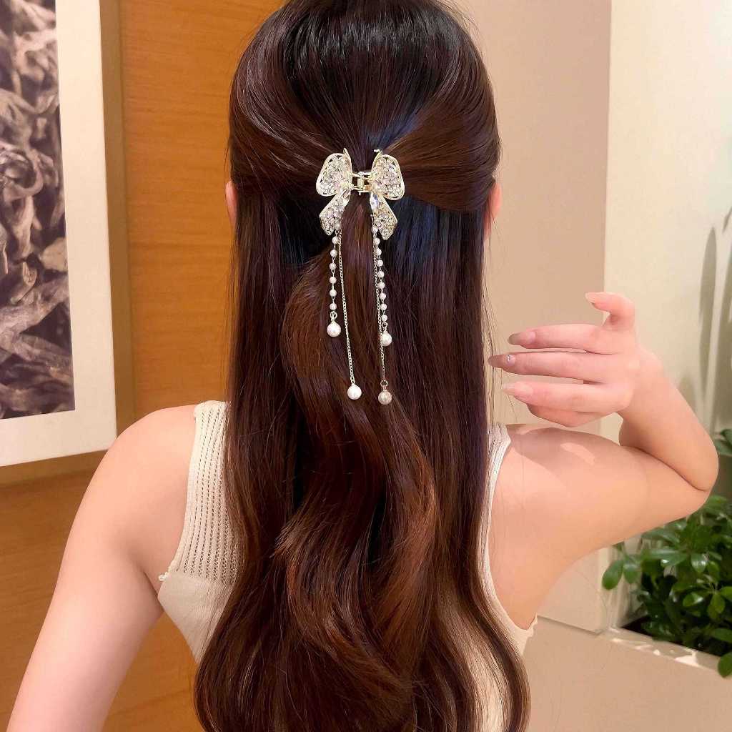 Klip Rambut🌸蝴蝶结流苏抓夹 Ribbon Tassel Hair Clip 超仙美铃兰花蝴蝶抓夹流苏发夹女鲨鱼夹甜美少女后脑勺 Hair Pin Hair Claw Accessories