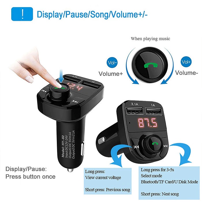 《 𝗔𝗟𝗟 𝗖𝗛𝗔𝗡𝗡𝗘𝗟 》Car MP3 Player Wireless Bluetooth FM Transmitter 3.1A Dual USB Charger Handsfree Radio Kit Kereta 汽车蓝牙充电器