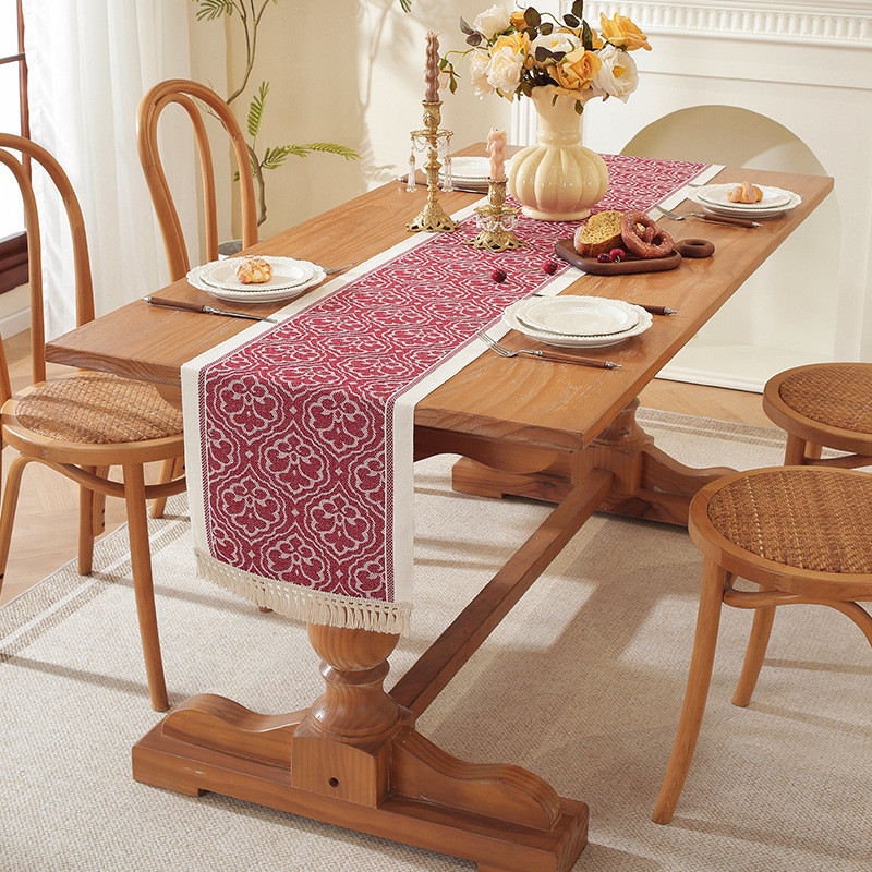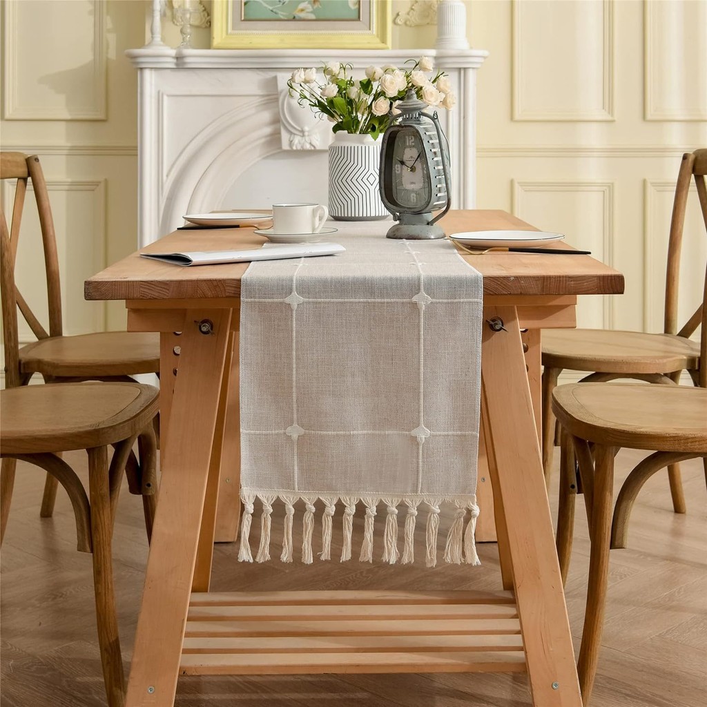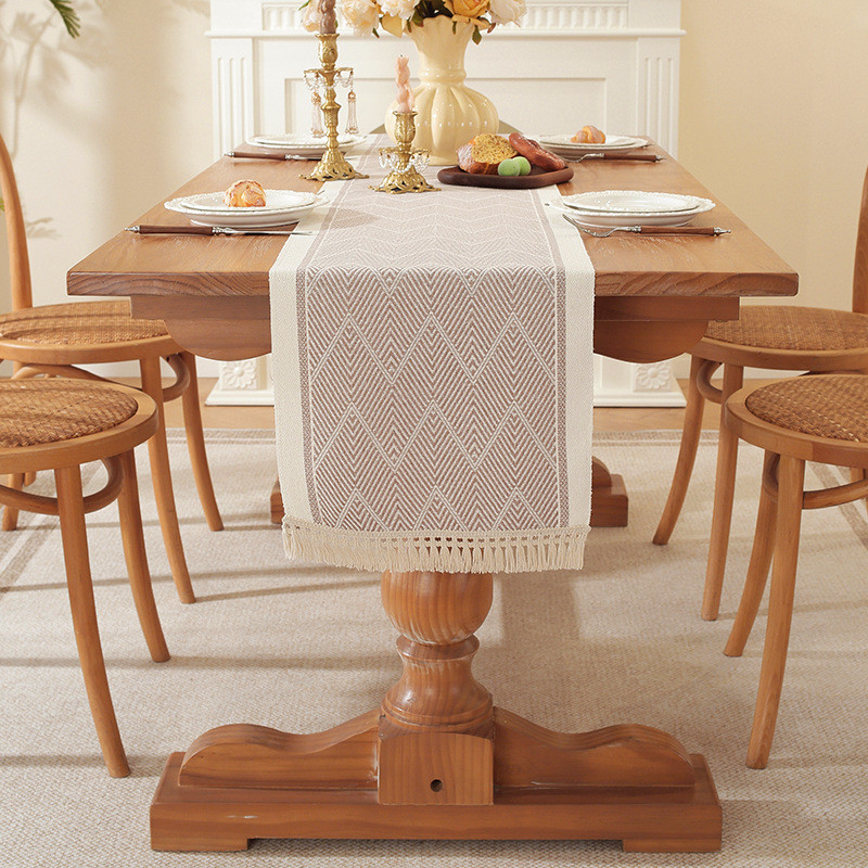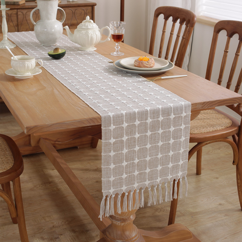 OMMO Table Runner Plaid Wavy Dining Table Cloth Polyester Fiber Cloth Modern Side Cabinet Cover