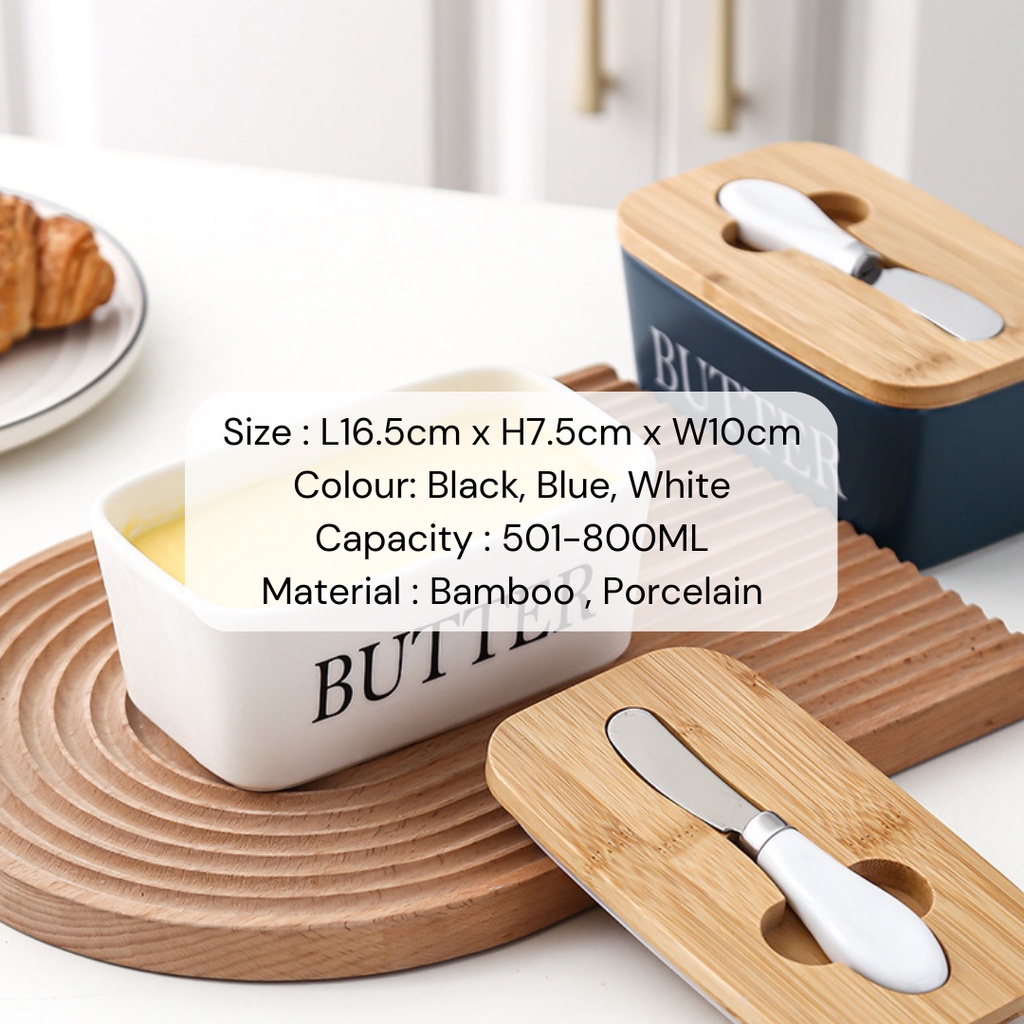 OMMO Ceramic Butter Canister Storage with Free Knives