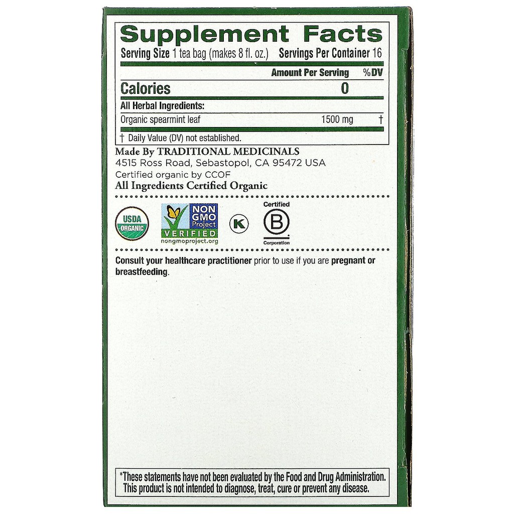 ✅READY STOCK✅ Traditional Medicinals, Herbal Tea, Organic Spearmint, 16 teabags