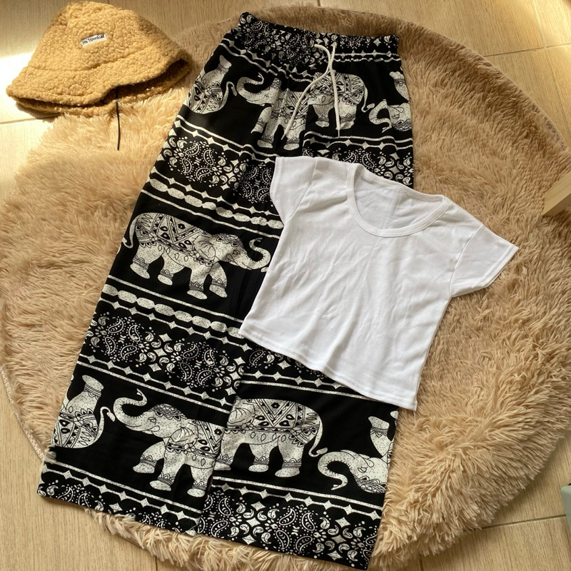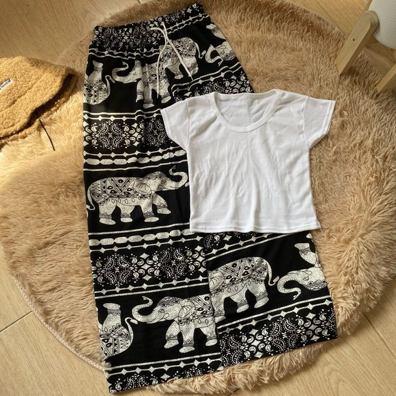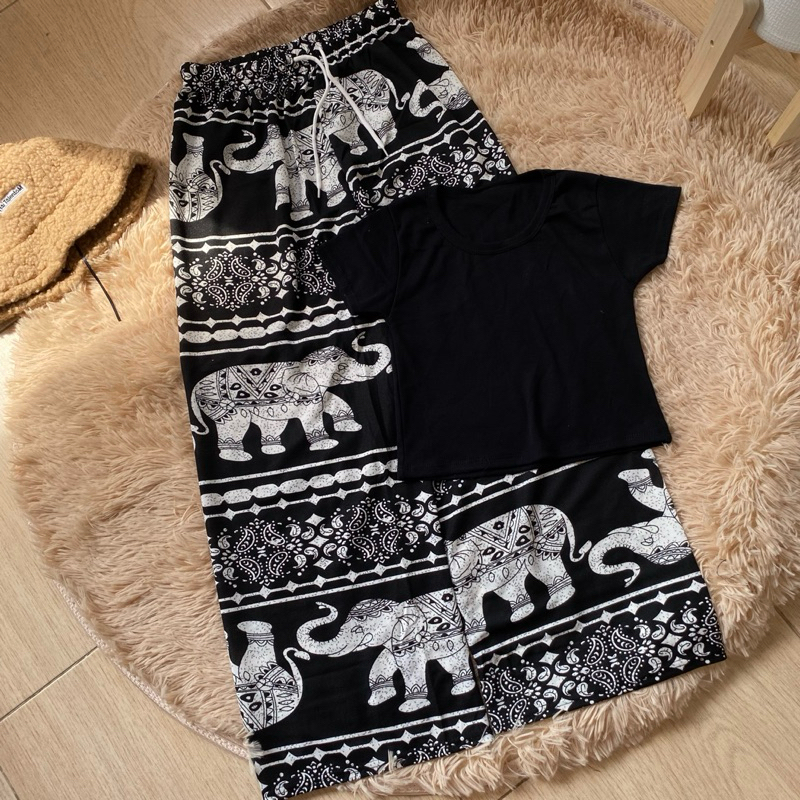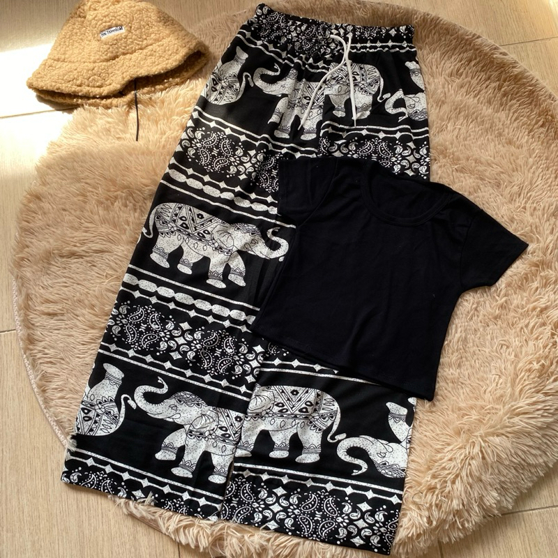 Set Of 2 Elephant Pants Crop Top + Mixed Patterns Crop Top Set Crop Top One Set