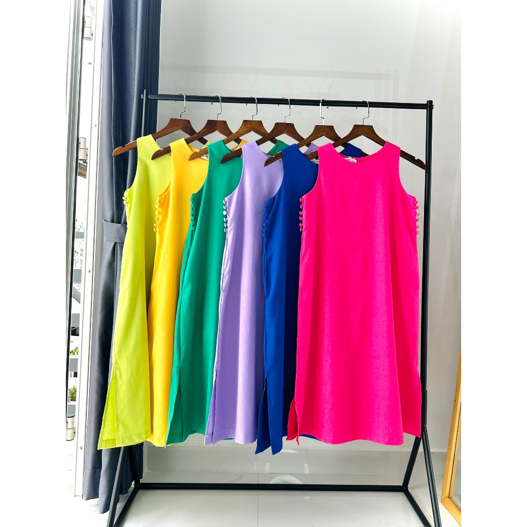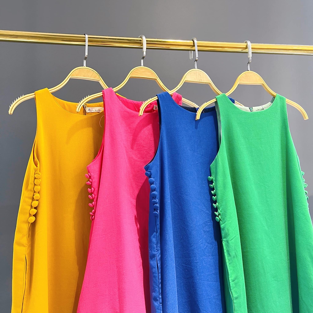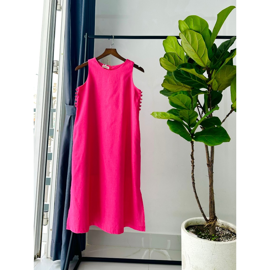 [Quynh MY] Linen dress with loose form and button design on both sides