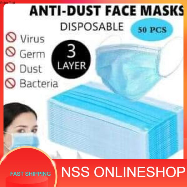 50 pcs 3-ply mask Anti-Fog Dust-Proof Comfortable Face Masks READY STOC 50pcs 马来西亚现货 50个3层口罩