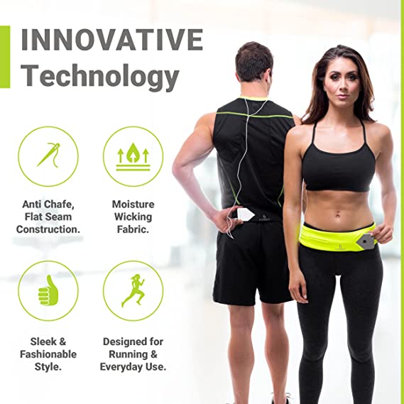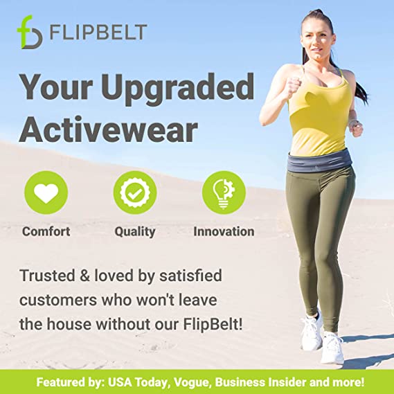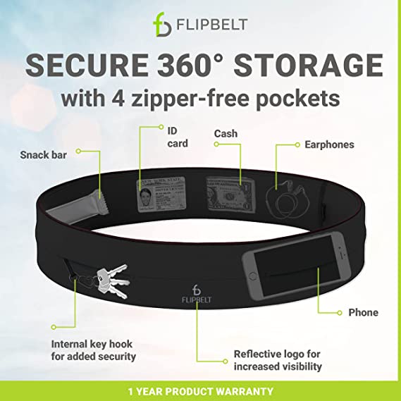 FlipBelt Classic Running Belt | Running Fanny Pack for Women and Men | Non Chafing Waist Band Pack for Phone | Moisture