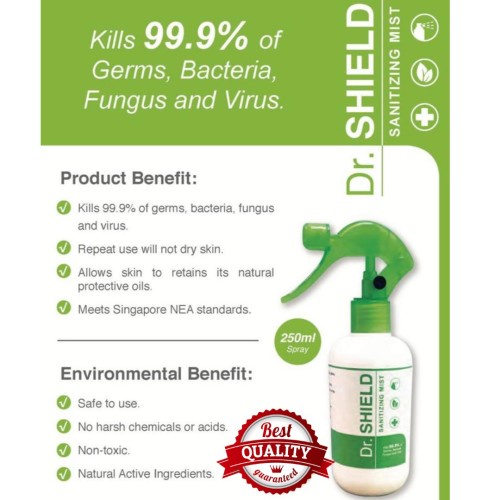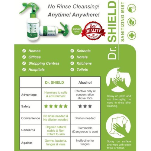 READY STOCK Dr.SHIELD 250ml Hand Sanitizer Mist Alcohol Free Hand Sanitizer eliminate germs family office factory use s