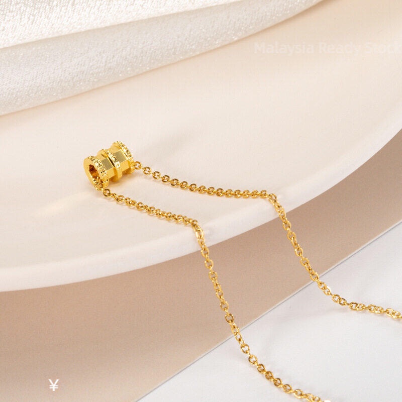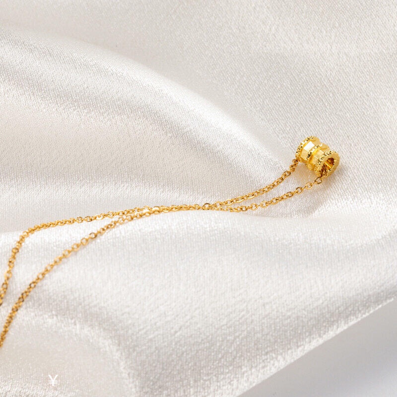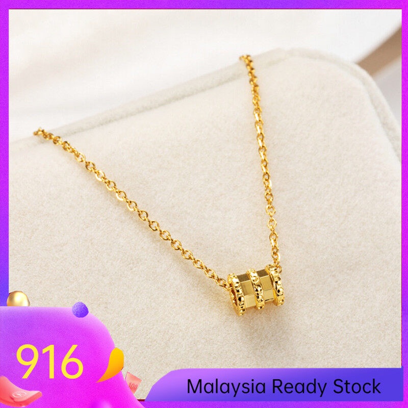 Gold Jewelry 916 Original Gold Girl Necklace Fashion Small Waist Wild Chain Pendant Necklace Women's Luck Bead