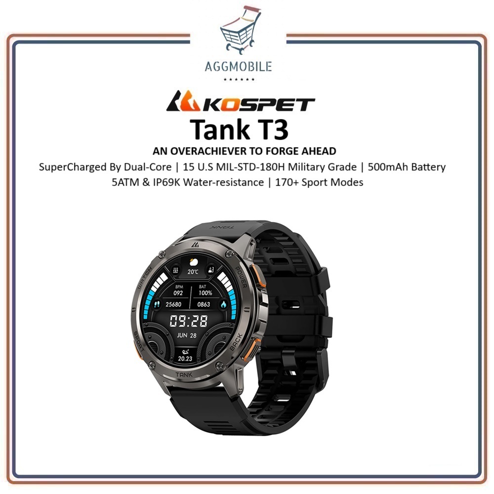 Kospet Tank T3 Smartwatch (1.46"AMOLED | 5ATM & IP69K | 170+ Sport Modes | Bluetooth Calls)