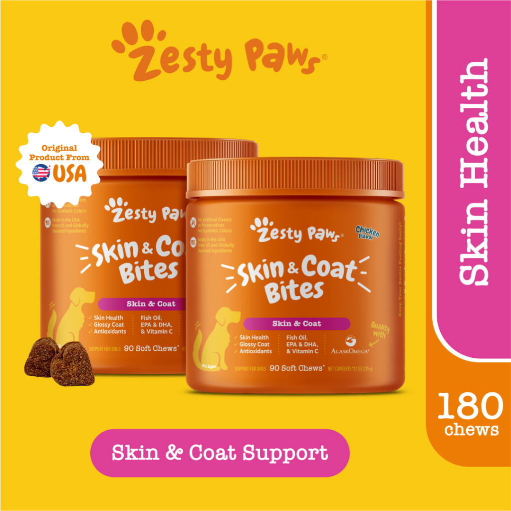 Zesty Paws Skin & Coat Bites for Dogs Skin & Coat - Chicken Flavor (90 Soft Chews) (EXP:11 2026)