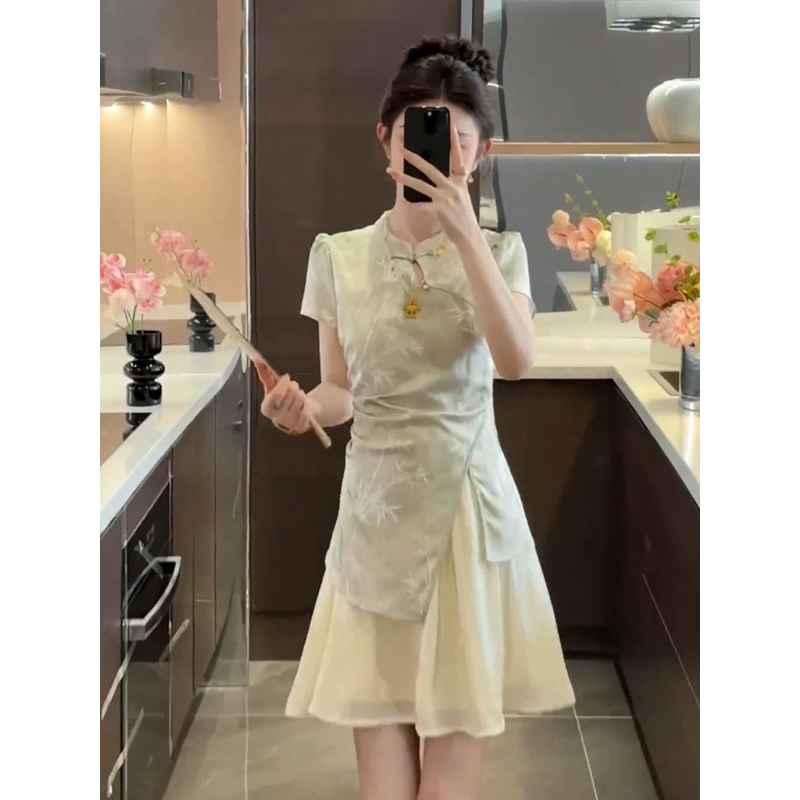 New Chinese style fake two-piece cheongsam dress for women in summer with high-end temperament, slim waist and small