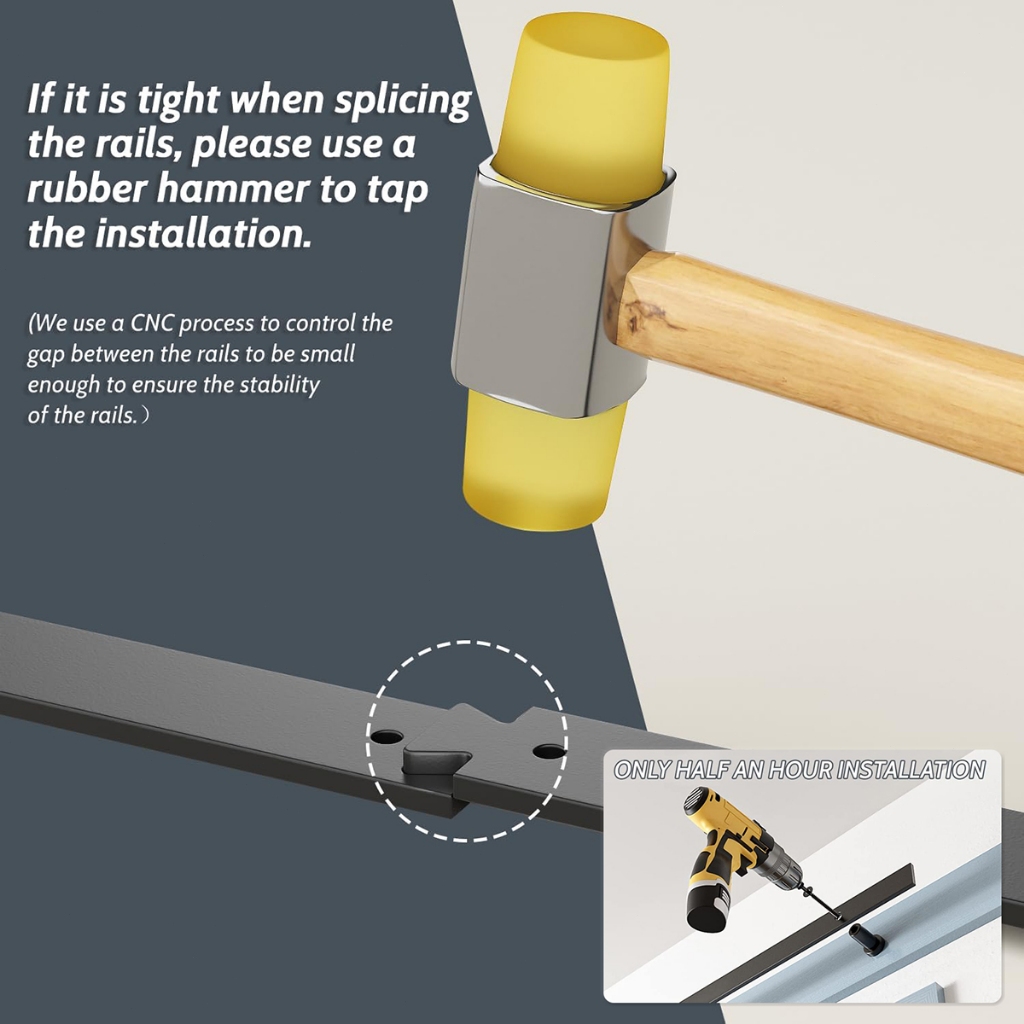 Barn Sliding Door Hardware Hanging Rail Carbon Steel Sliding Wood Barn Door Roller Rail 4.9FT/6FT/6.6FT/8FT