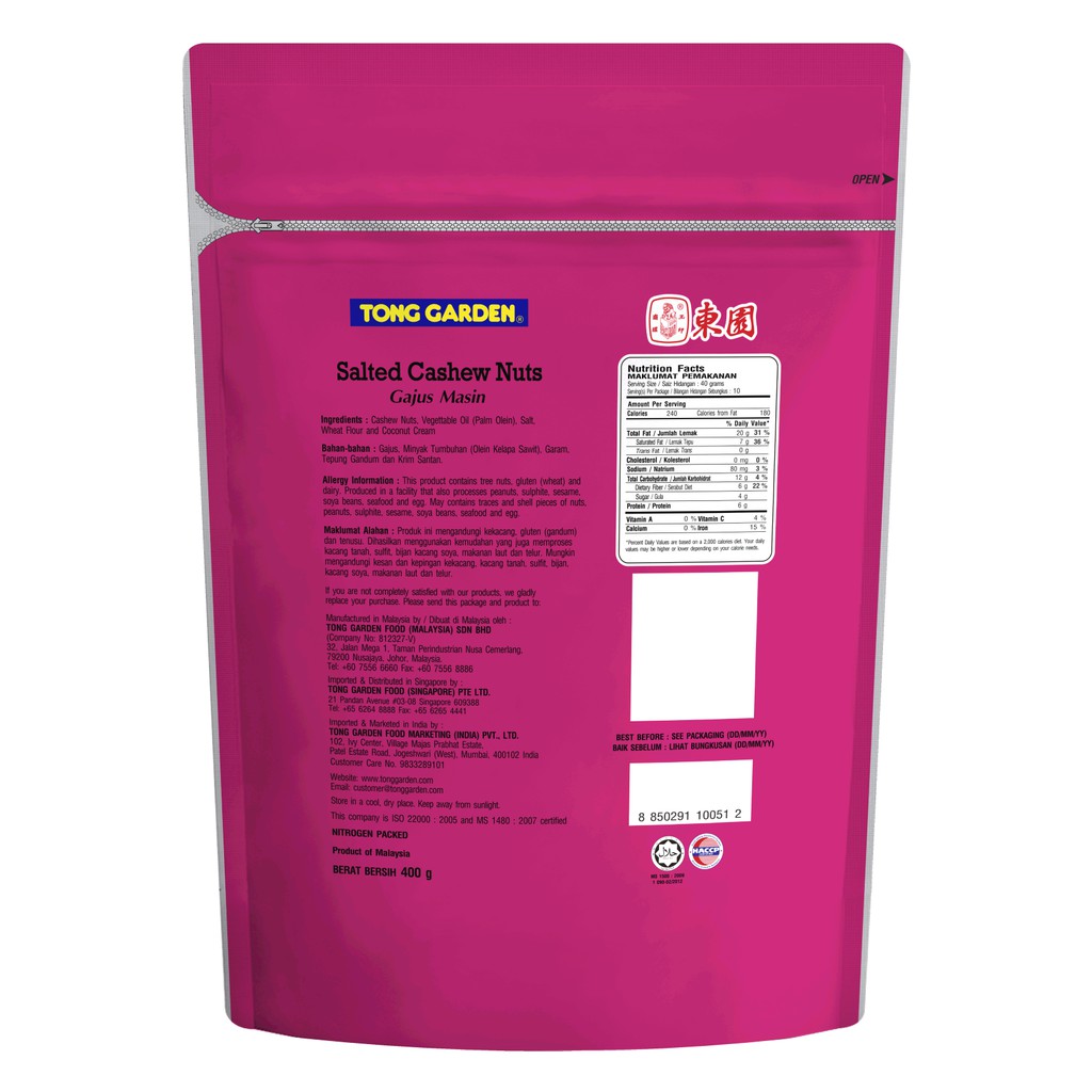 Tong Garden Salted Cashew Nuts 400g