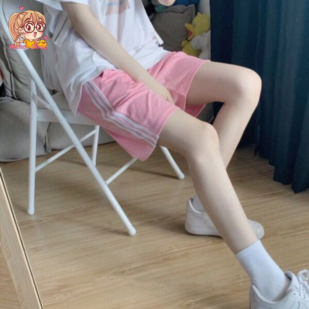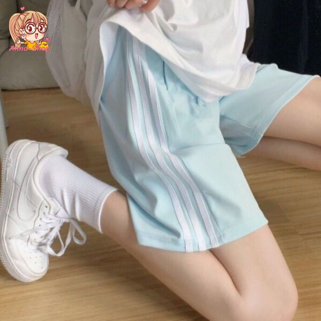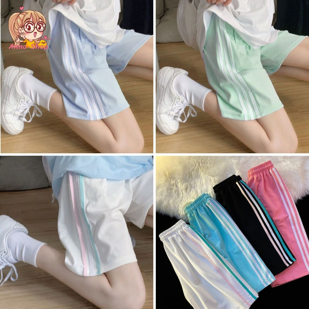 annacny Shorts With Side Stripes Sports Pants Elastic Waist Pastel Color P005 Short Pants Women