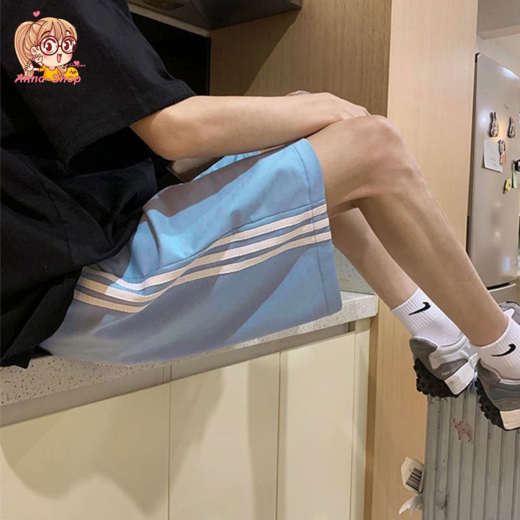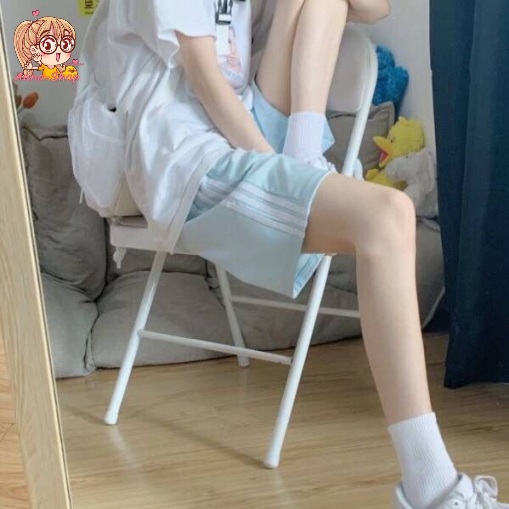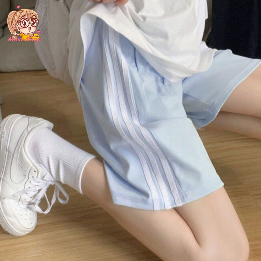 annacny Shorts With Side Stripes Sports Pants Elastic Waist Pastel Color P005 Short Pants Women