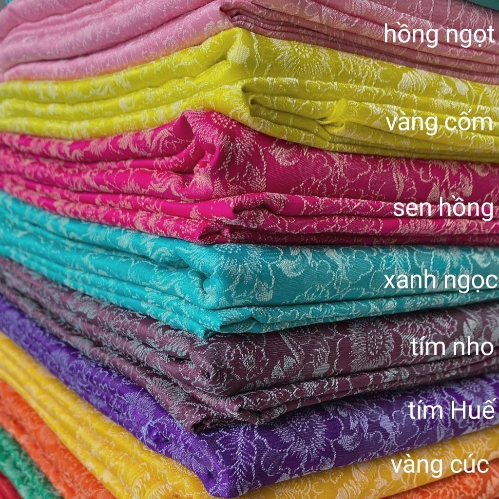 [Ao Dai FABRIC] GENUINE CHrysanthemum Brocade, Thick, Sharp, TRUE, WRINKLES. HORIZONTAL SIZE 1M6.