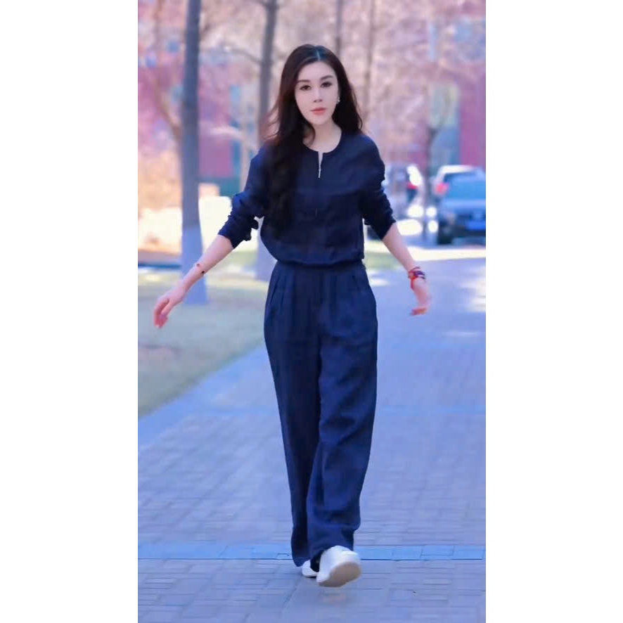 S17 Linen Zipper Jacket and Straight Pants Set