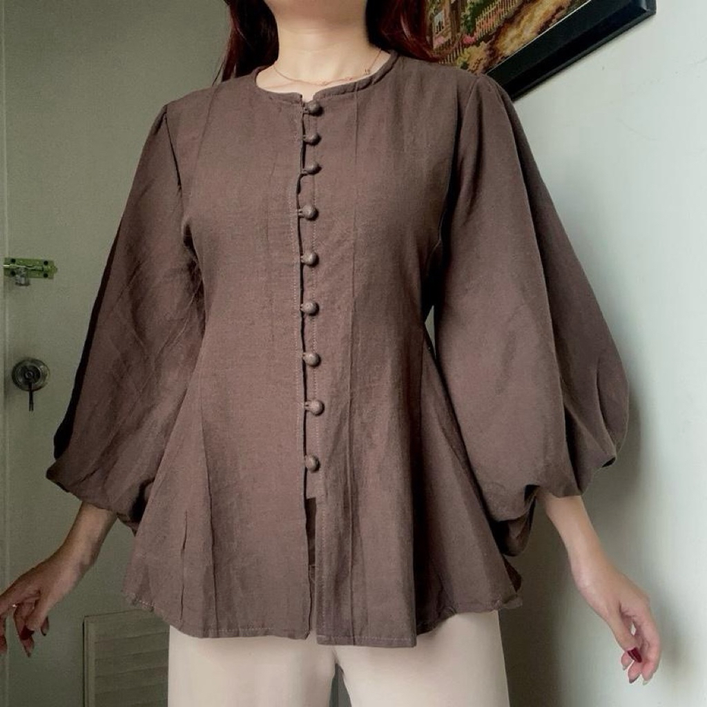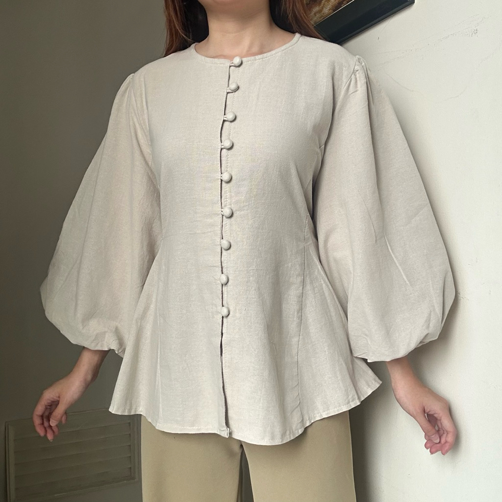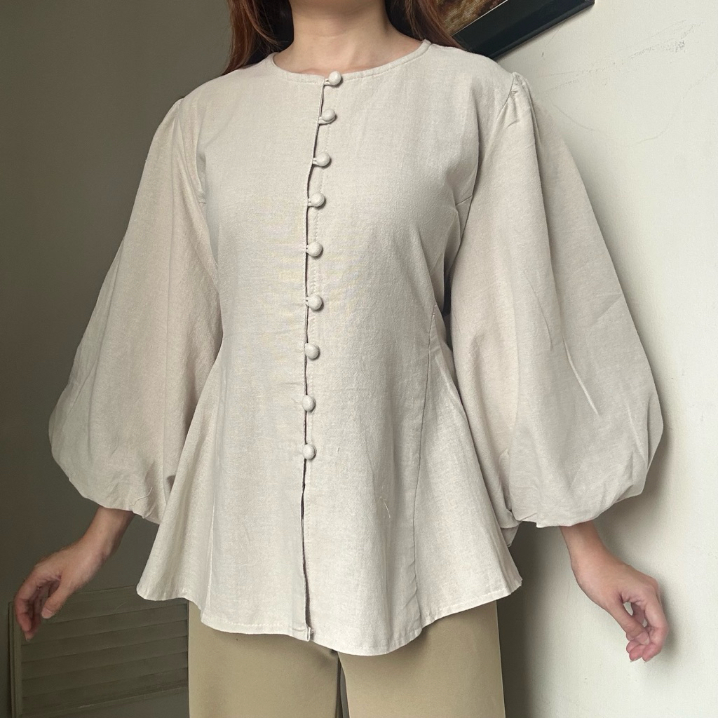 KEMEJA Astrid Top Women's linen work blouse shirt Top with long balloon sleeves, korean style by biel the label hi
