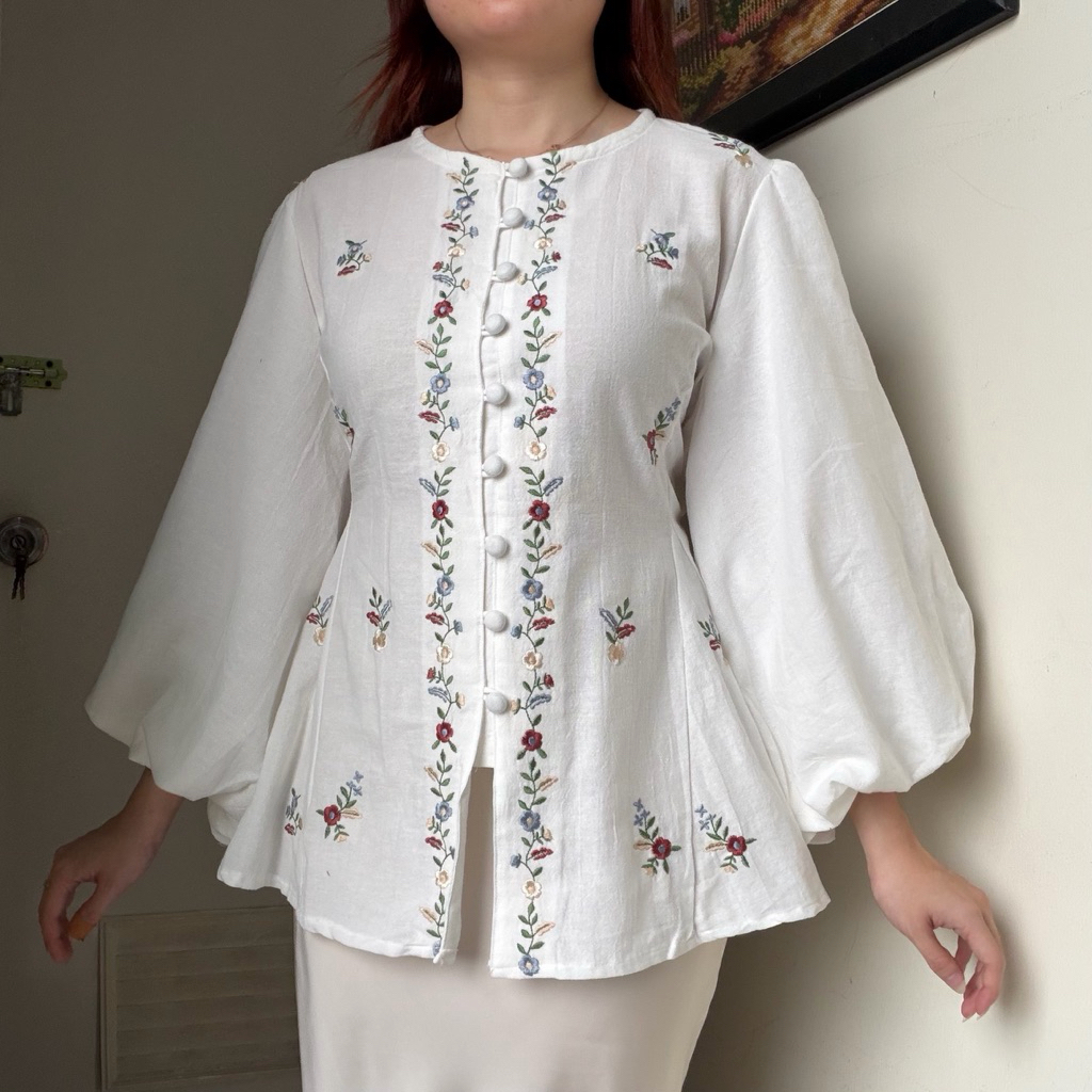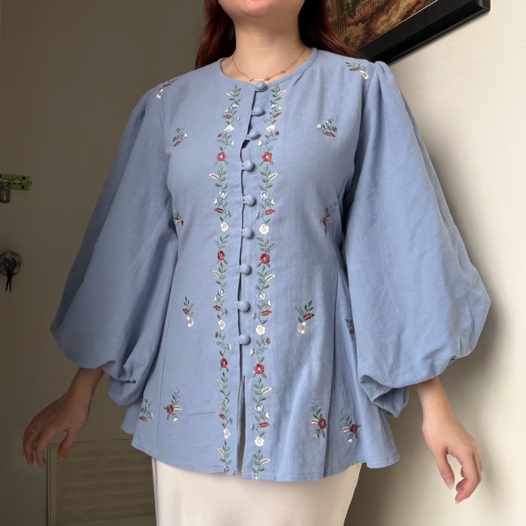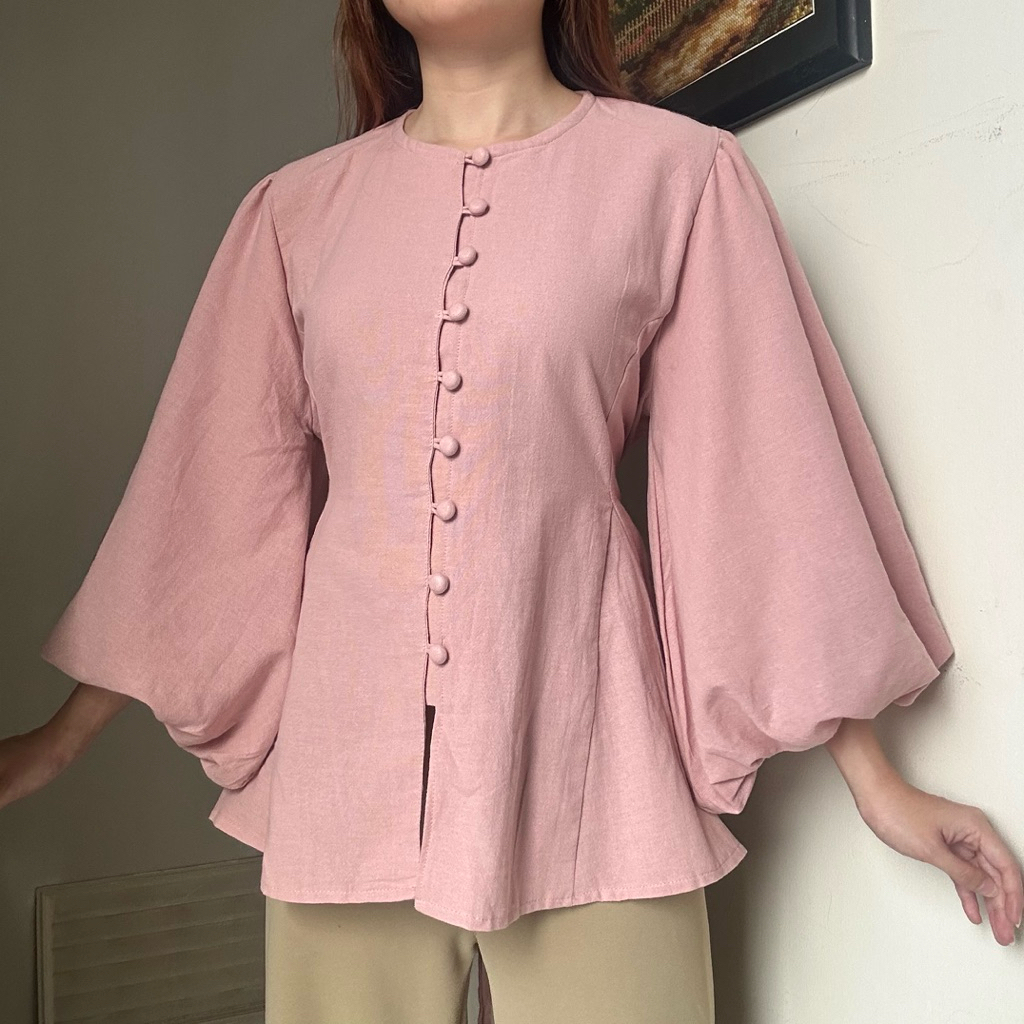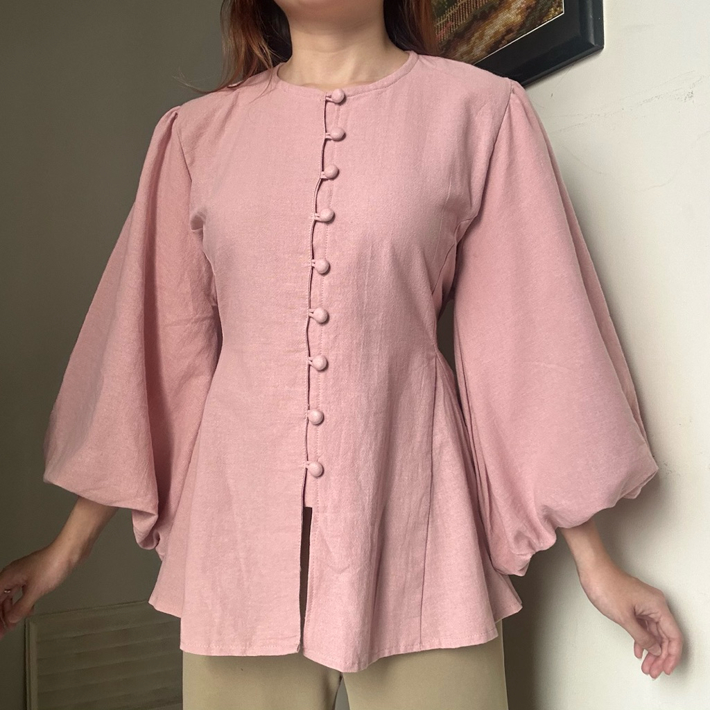 KEMEJA Astrid Top Women's linen work blouse shirt Top with long balloon sleeves, korean style by biel the label hi