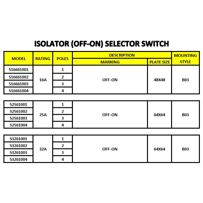 SALZER Isolator 16A 25A 32A (OFF-ON) Selector Switch 1pole 2poles 3poles 4poles S1661001 S1661003 S2561003 S3261003