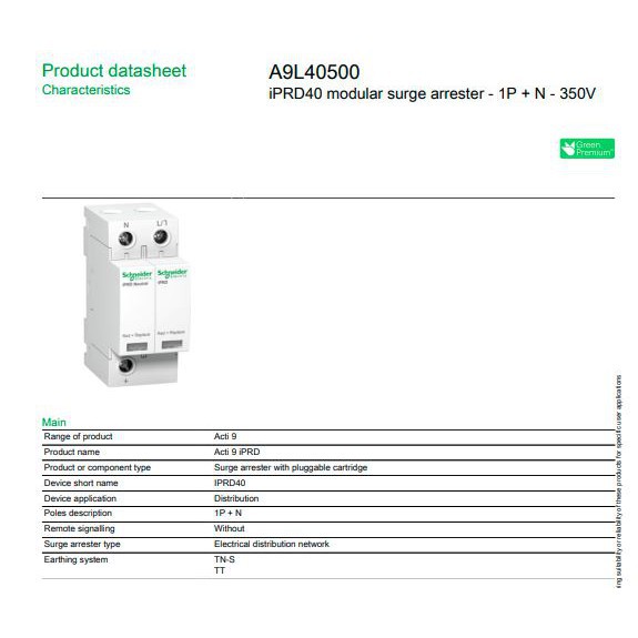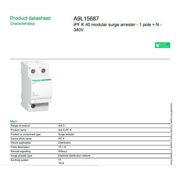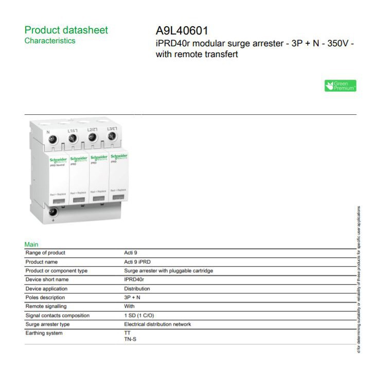 SCHNEIDER Surge arrester 1p+n 3p+n 40kA 65kA A9L40500 A9L40600 A9L40601 A9L65601