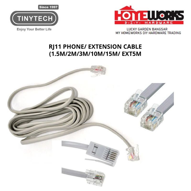 TINYTECH RJ11 PHONE/ EXTENSION CABLE(1.5M/2M/3M/5M/10M/515M/EXT5M)