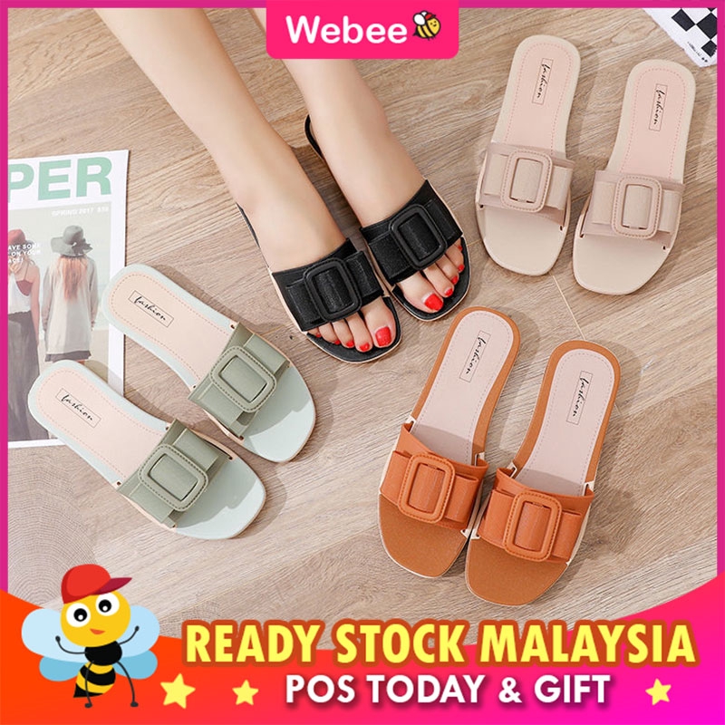 READY STOCK🎁WEBEE Obelia Women Sandals Kasut Flat Wanita Shoes Sandal Brings Buckle