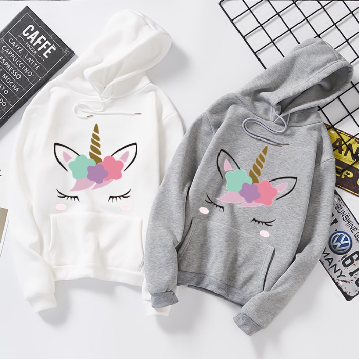 READY STOCK🎁WEBEE BJ 3599 Unicorn Men Women Loose Long Sleeve Hooded Hoodie Lelaki Perempuan sweater ( SMALL CUTTING )