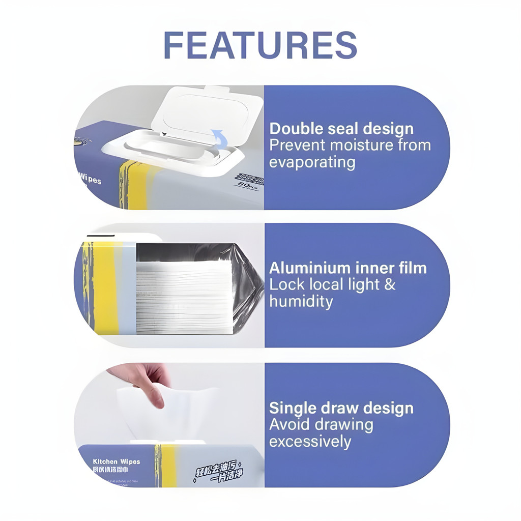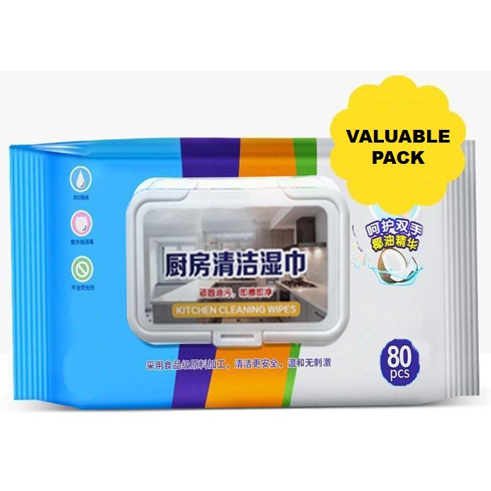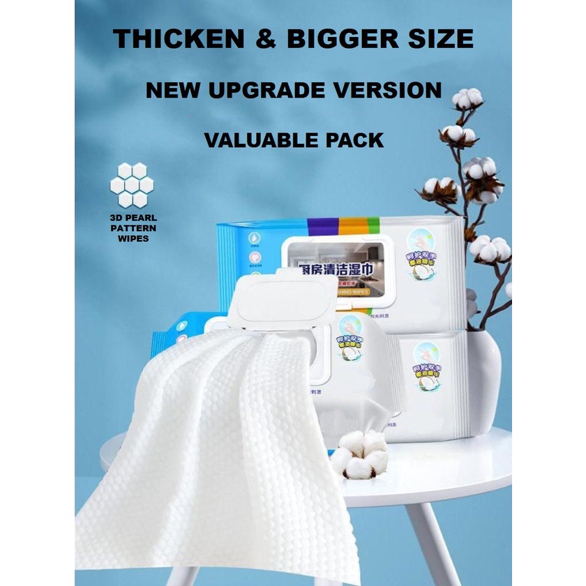 Kitchen Cleaning Wipes Strong Decontamination Valuable Pack Degreasing Lap Pembersih Dapur Tisu Basah Dapur 80pcs 12pcs