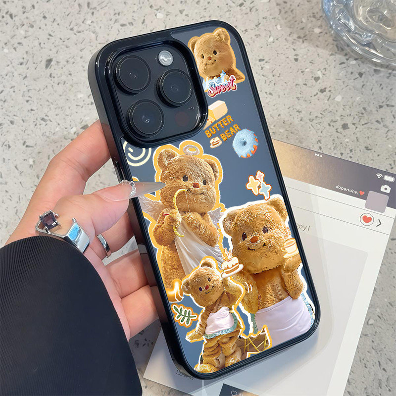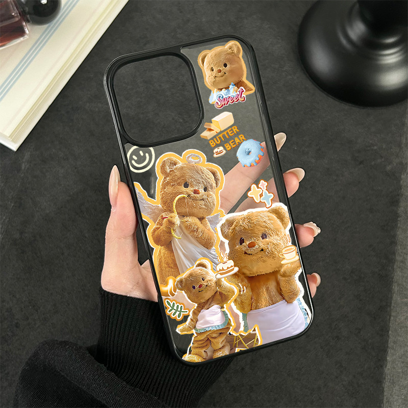 For Iphone 17 16 15 14 12 13 11 Pro Max 7 8Plus X XS XR Beruang Cute Bersama Roti Cangkang silikon lutsinar minimalis C