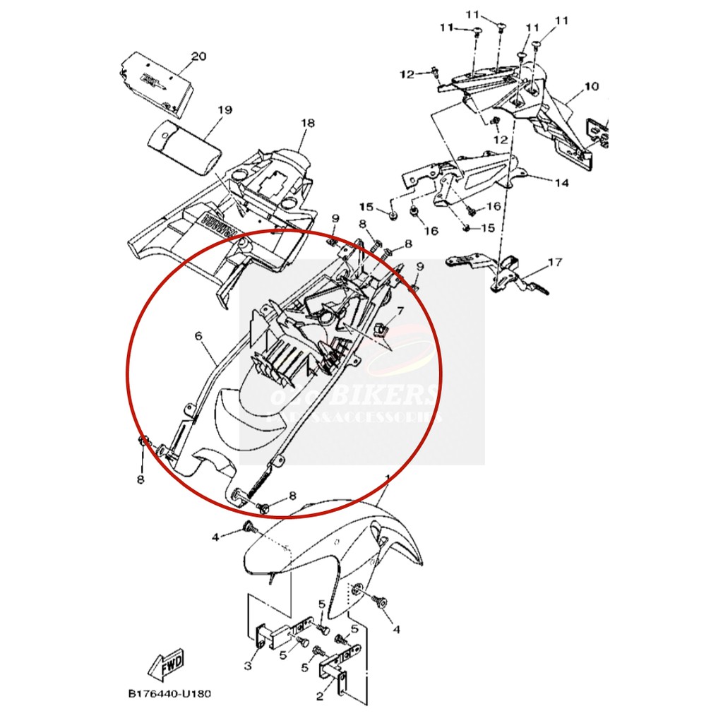 HLY Yamaha Y15ZR V1 Y15Z V2 Rear Fender Inner Cover Fenderless Center Mudguard Tayar Y15
