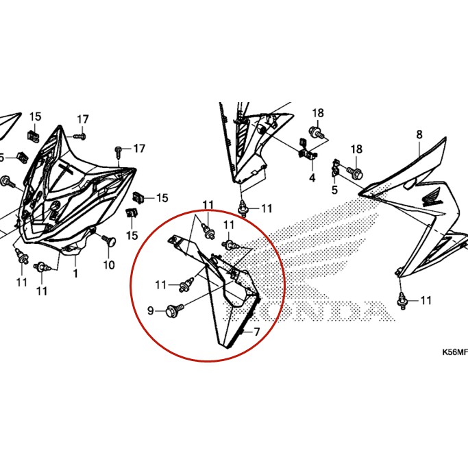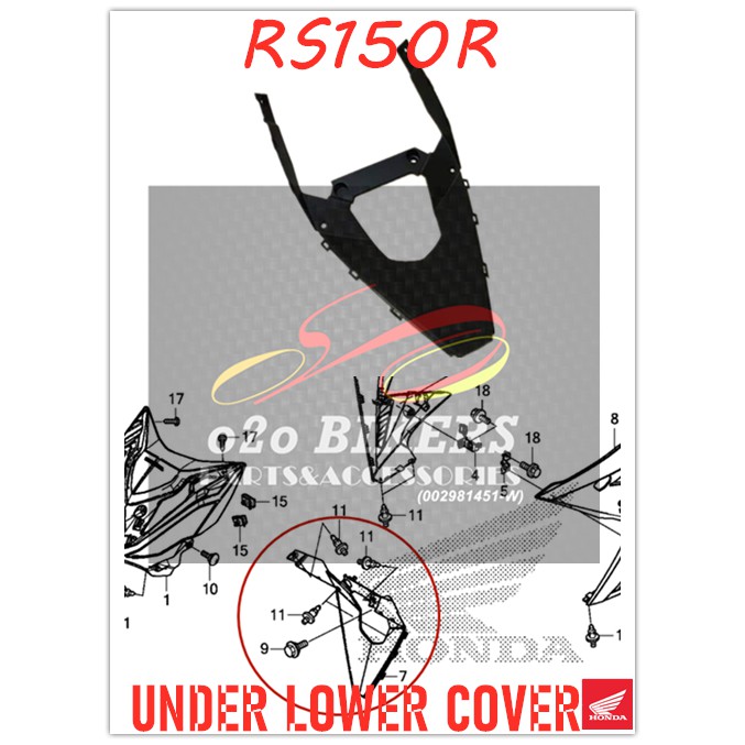 ENGINE COVER LOWER ORIGINAL BSH HONDA RS150R RS150 UNDER LOWER COVER PANEL ,MUDGUARD LOWER INNER MATT BLACK SAMPAN CAP